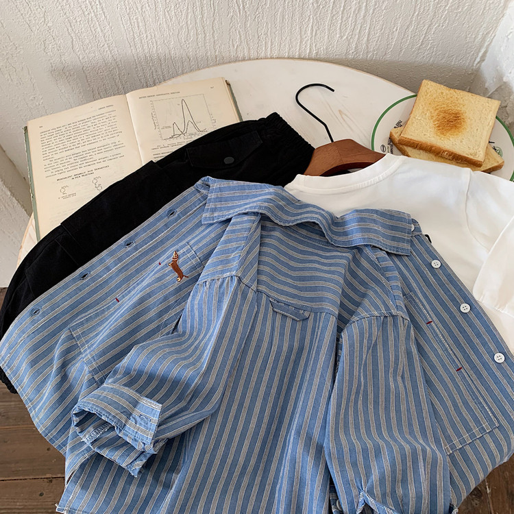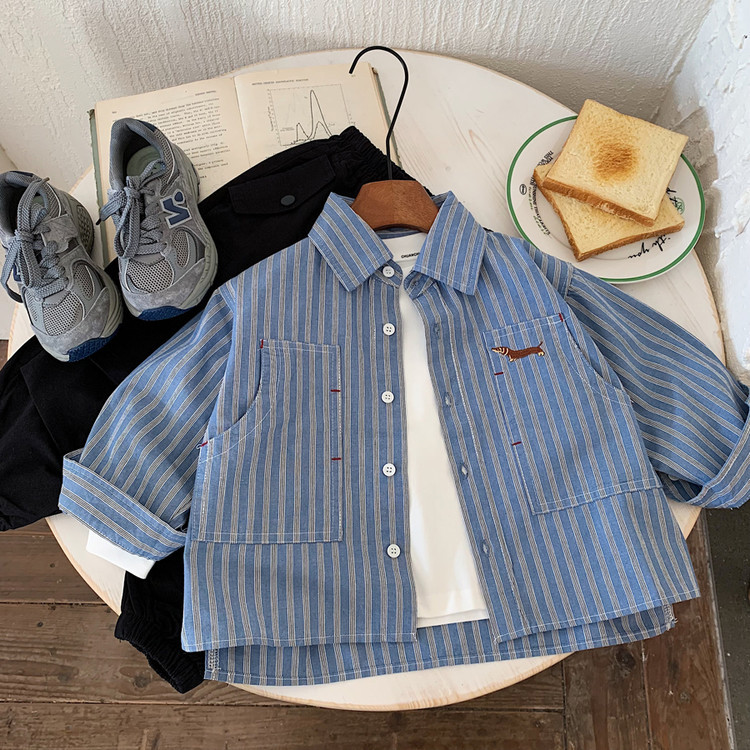 남아용 스트라이프 셔츠 2026 봄 신상 아기 캐주얼 멋진 자수 다용도 셔츠 카디건 트렌디스토어 가기