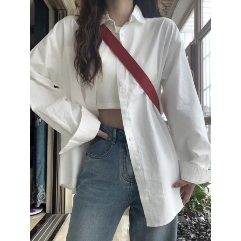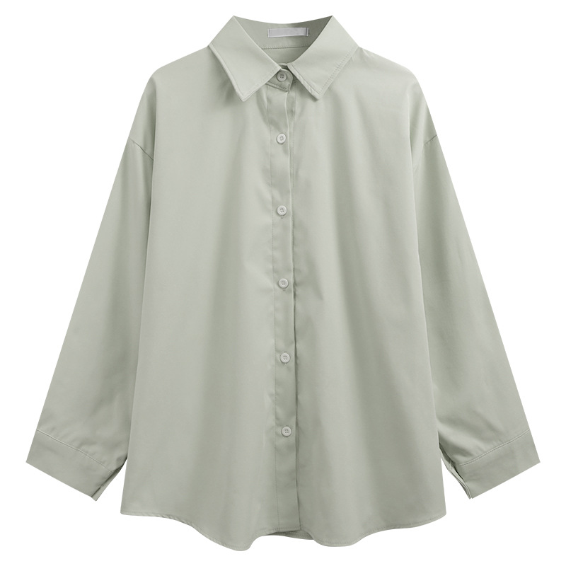 화이트 셔츠 여성의 봄과 가을 내부 스택 블루 셔츠 여성의 느슨한 캐주얼 코트 새로운 봄과 가을 외부 탑스토어 가기