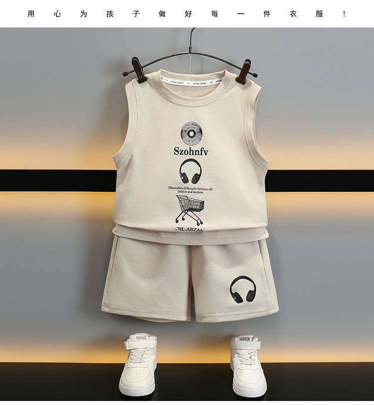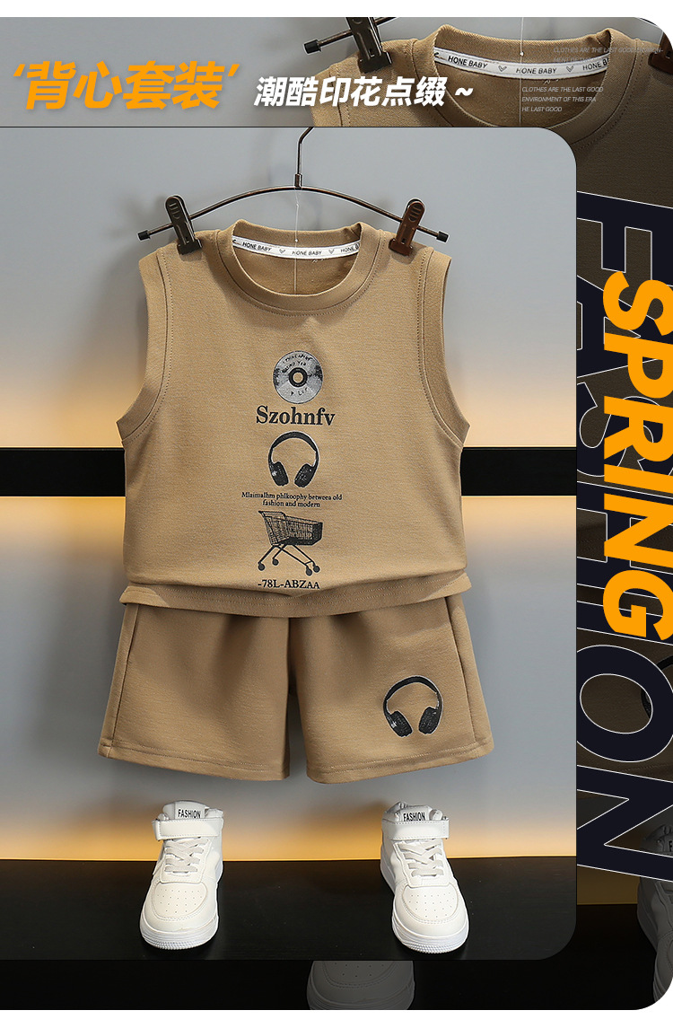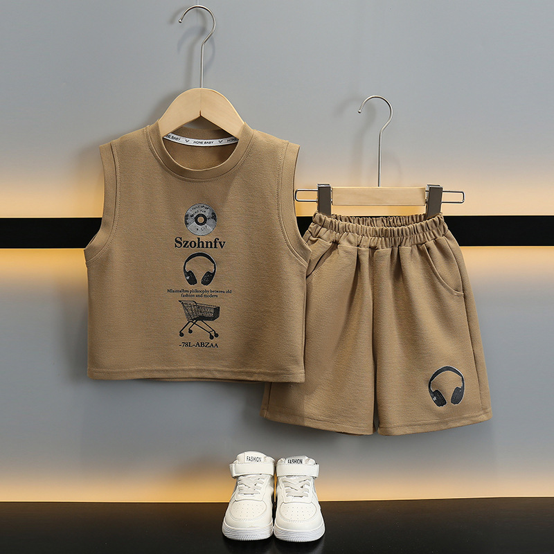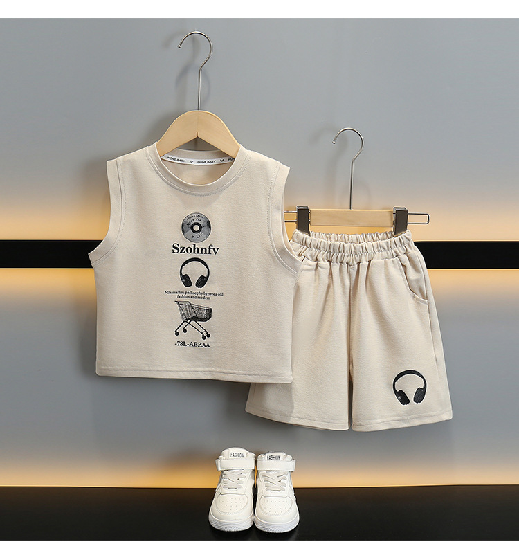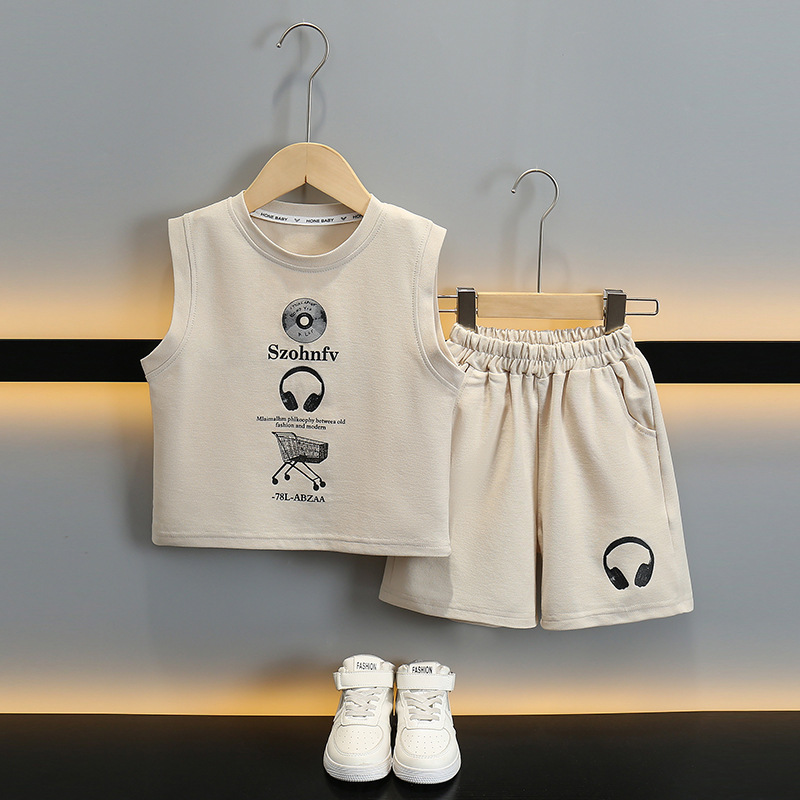 소년 세트 어린이 여름 민소매 조끼 투피스 세트 2025 새로운 잘 생긴 소년의 편지 인쇄 운동복스토어 가기