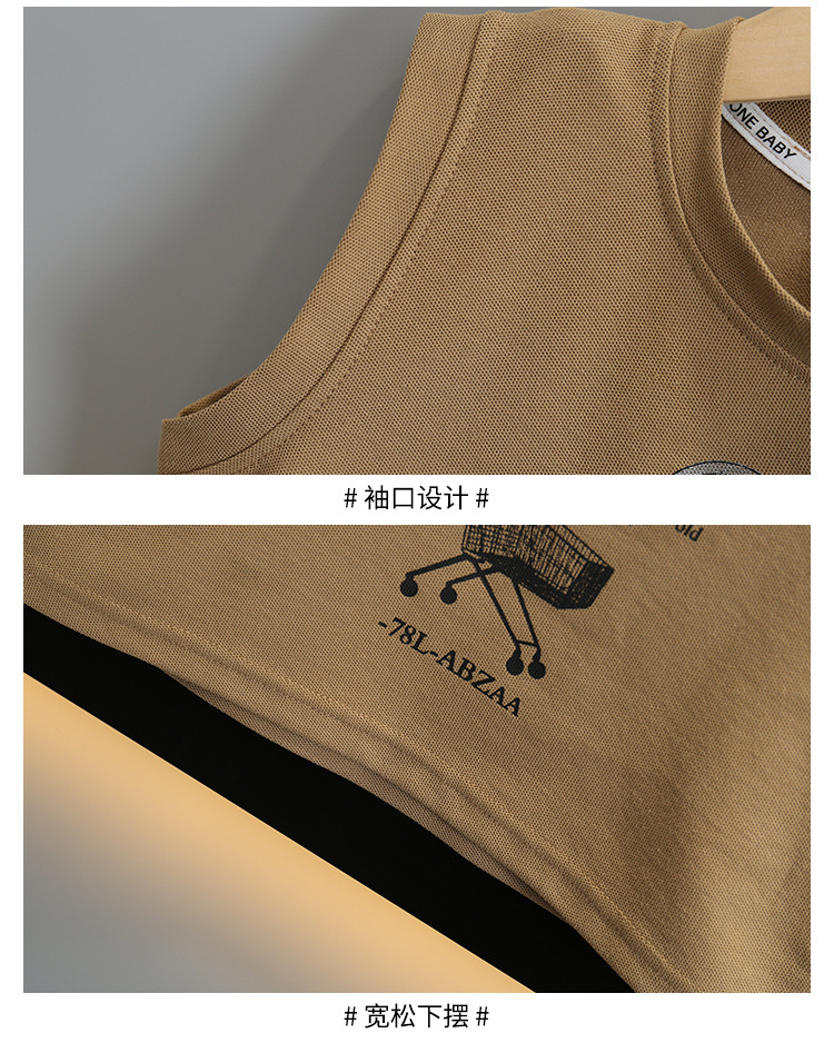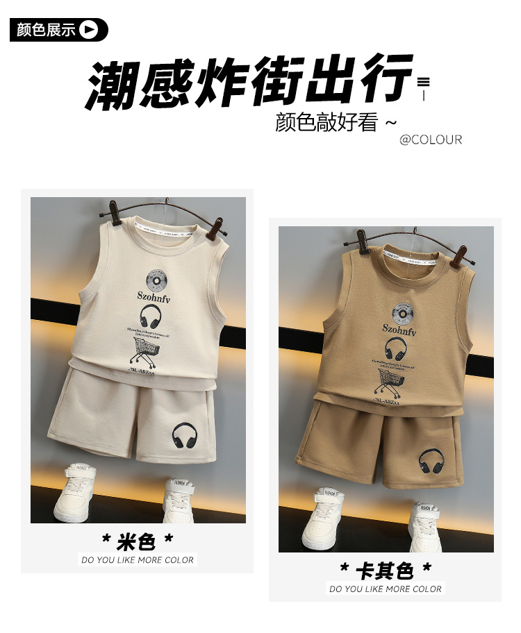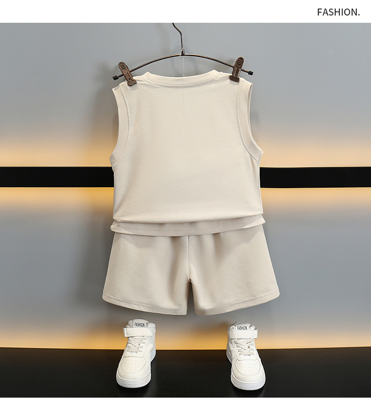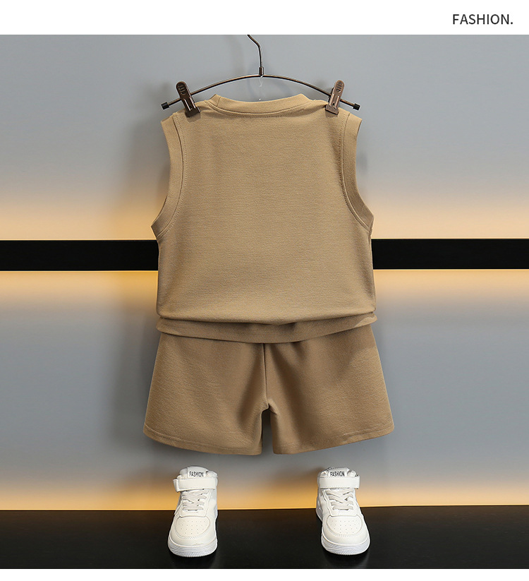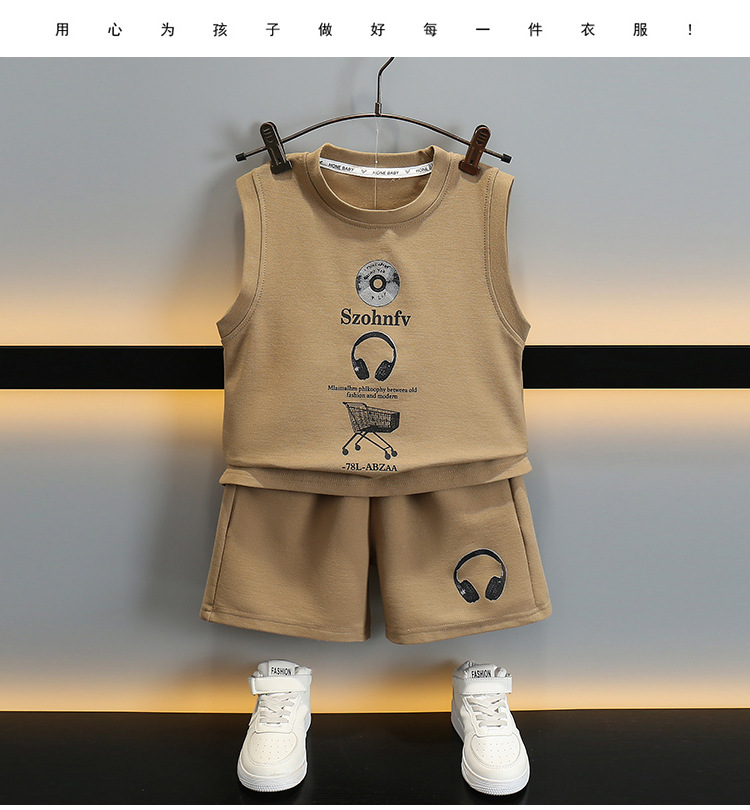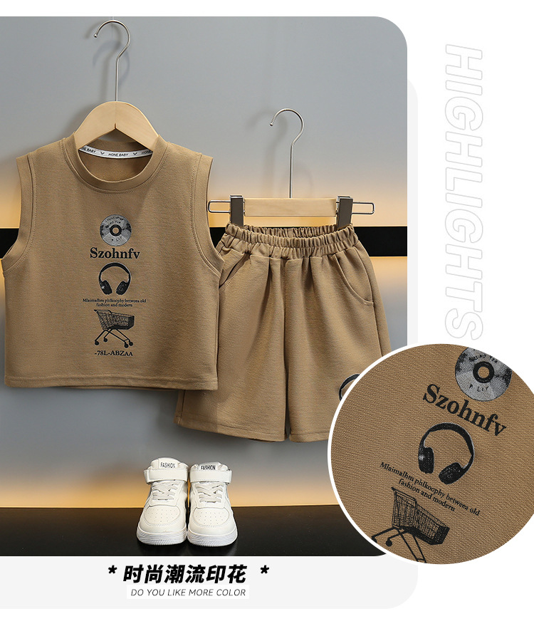 소년 세트 어린이 여름 민소매 조끼 투피스 세트 2025 새로운 잘 생긴 소년의 편지 인쇄 운동복스토어 가기