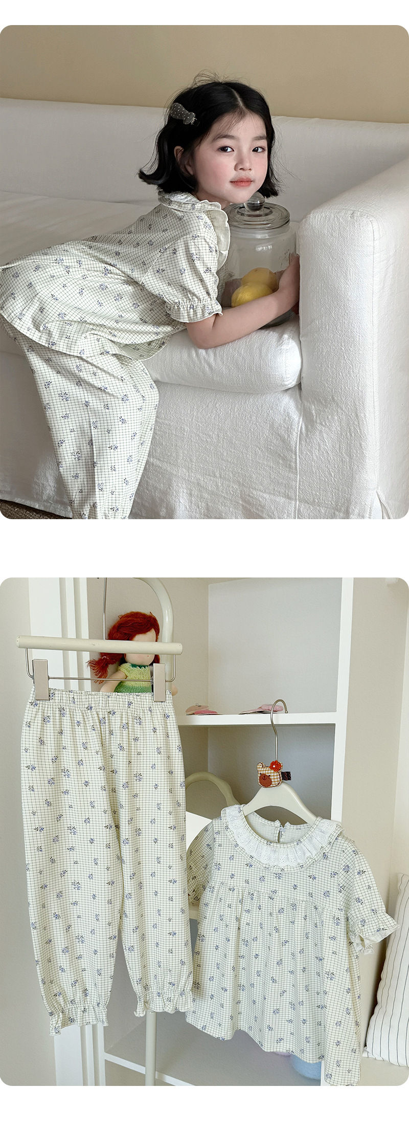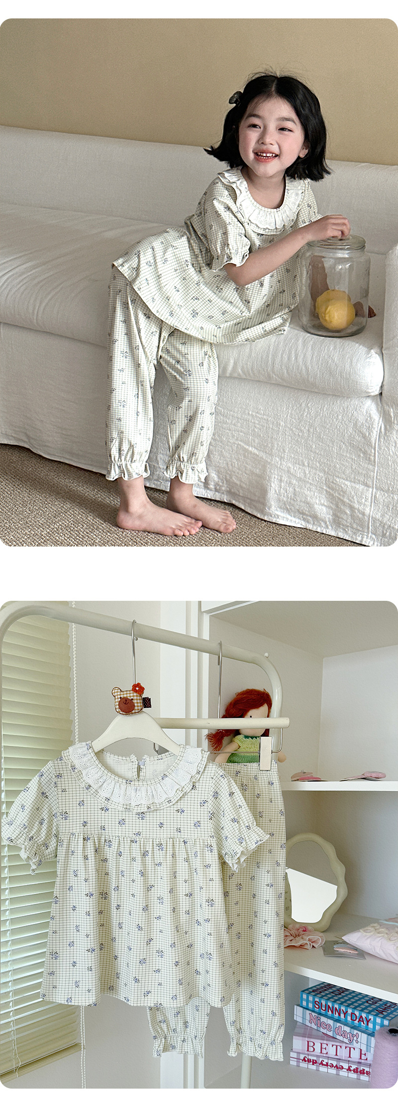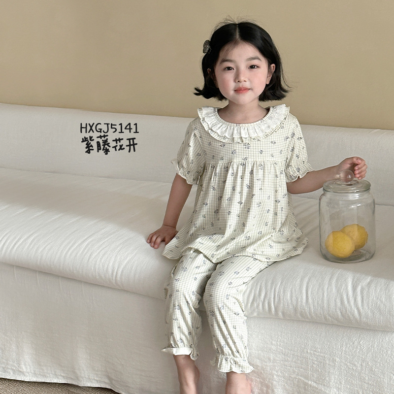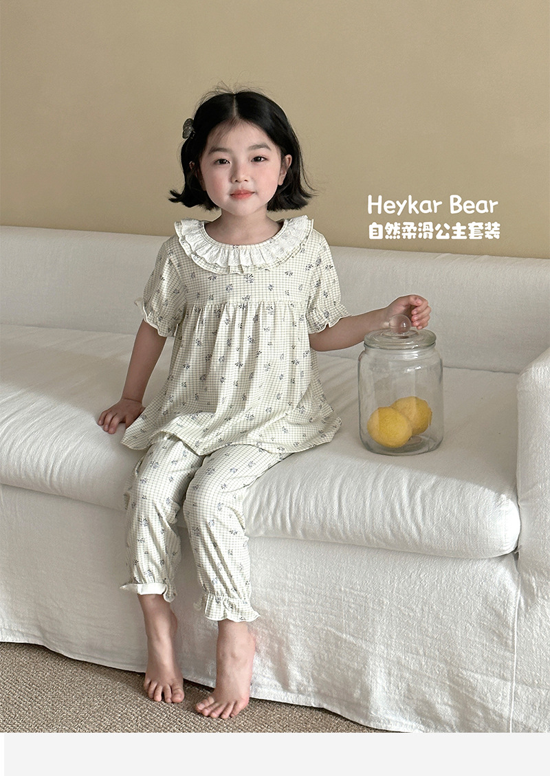 검은 카페 곰 둥근 목 만화 전체 인쇄 유카 실크면 클래스 어린이 홈 옷 봄 느슨한 소녀 레이스 스커트 세트스토어 가기