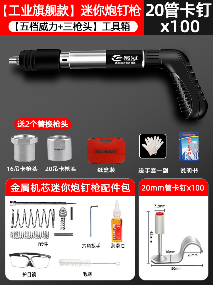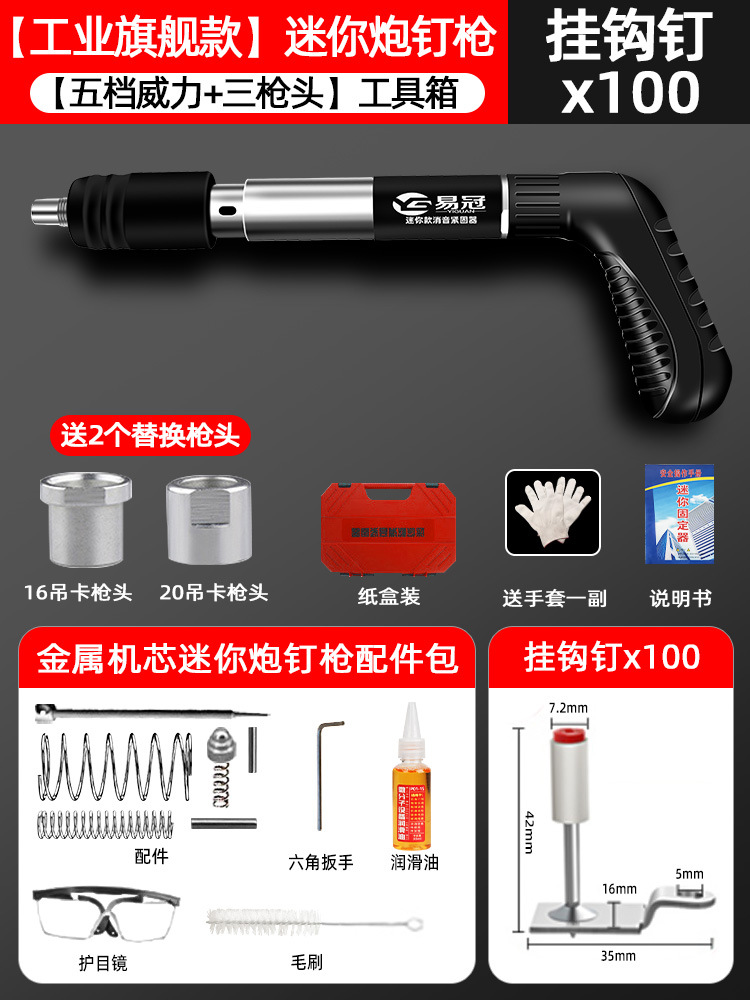 • [Chaowei 합금 모델] 미니 건 도구 상자 세트 + 무료 20튜브 못 100개(5단계 강도 조절 + 녹 방지 총 머리 3개 + 소음 감소 80%)