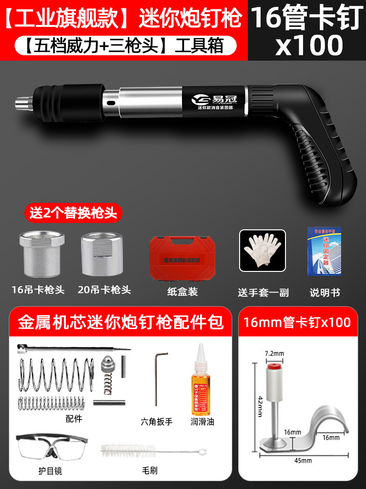 • [Chaowei 합금 모델] 미니 건 도구 상자 세트 + 무료 16튜브 못 100개(5단계 강도 조절 + 녹 방지 총 머리 3개 + 소음 감소 80%)