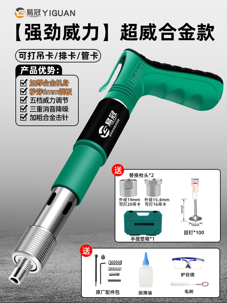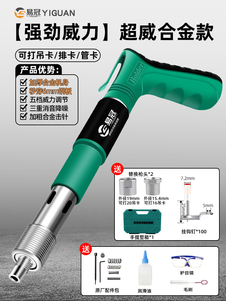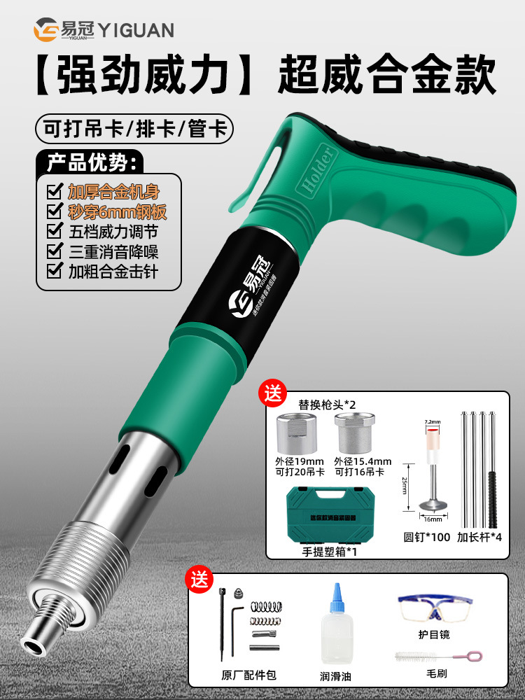 • [슈퍼 파워 합금 모델] [미니 건 도구 상자 세트 + 연장 막대*4] 무료 원형 못 100개(5단계 파워 조정 + 녹 방지 건 헤드 3개 + 소음 감소 80%)
