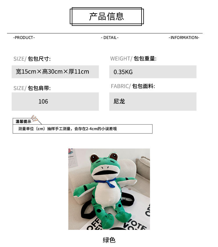 고급 인형 인터넷 인기있는 귀여운 새 도착 개구리 배낭 솜털 인형 여성 두꺼비 배낭 남성 외롭고 재미있는 배낭스토어 가기