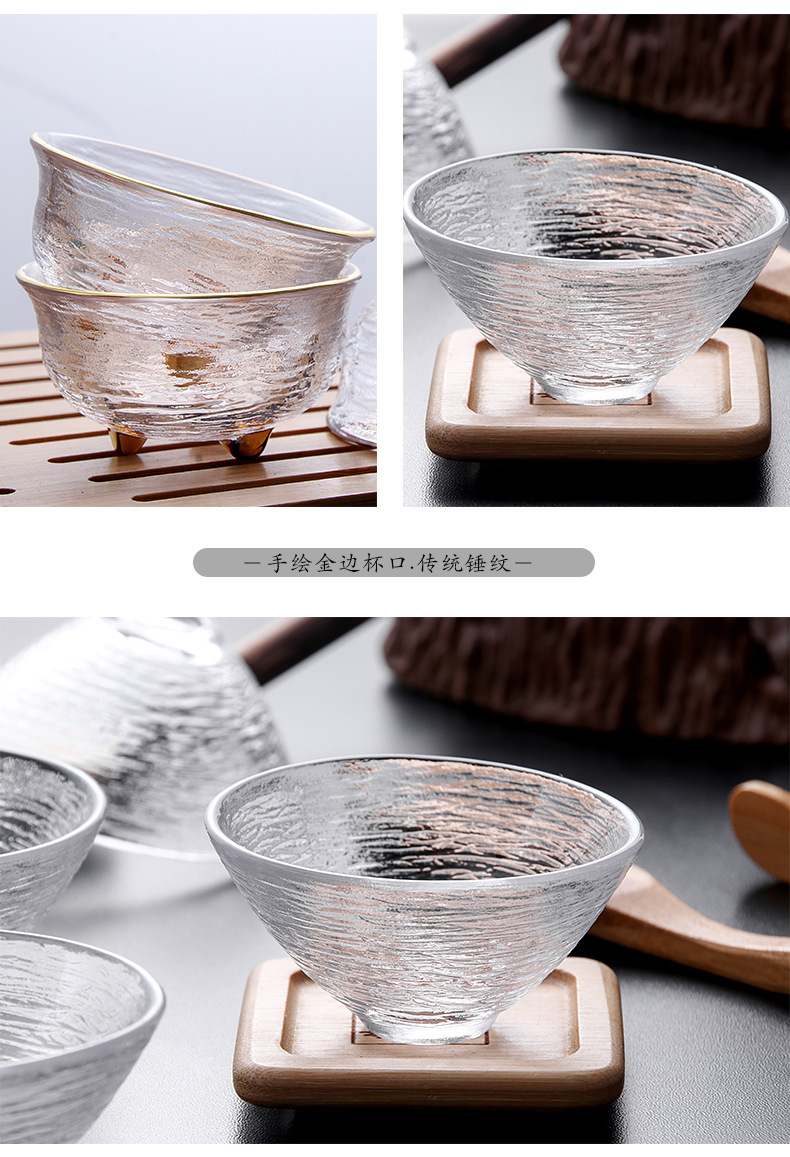일본식 금장 장식 주인용 컵 크리스탈 유리 차 세트 가정용 차잔 작은 차잔 쿵푸 차 세트 도매스토어 가기