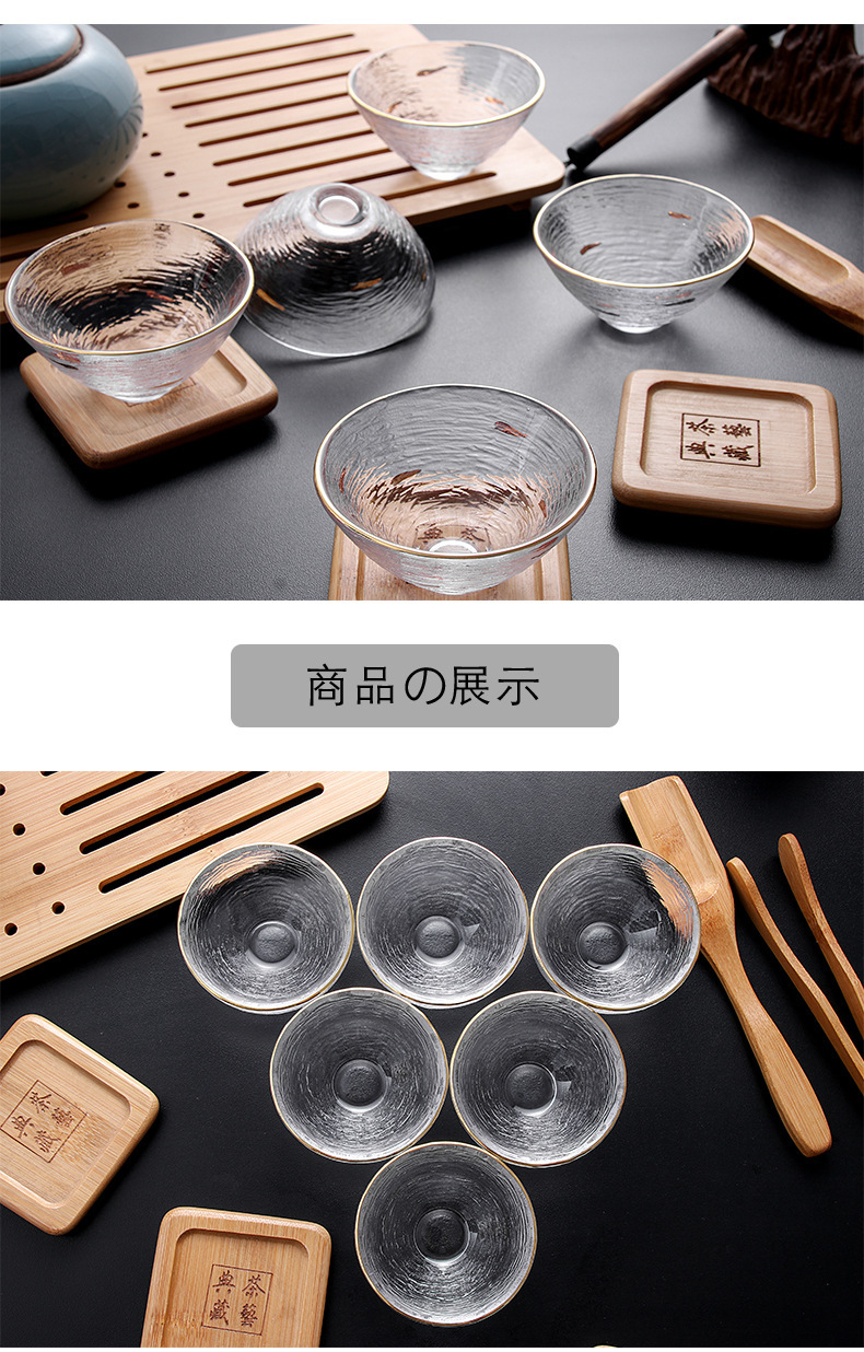 일본식 금장 장식 주인용 컵 크리스탈 유리 차 세트 가정용 차잔 작은 차잔 쿵푸 차 세트 도매