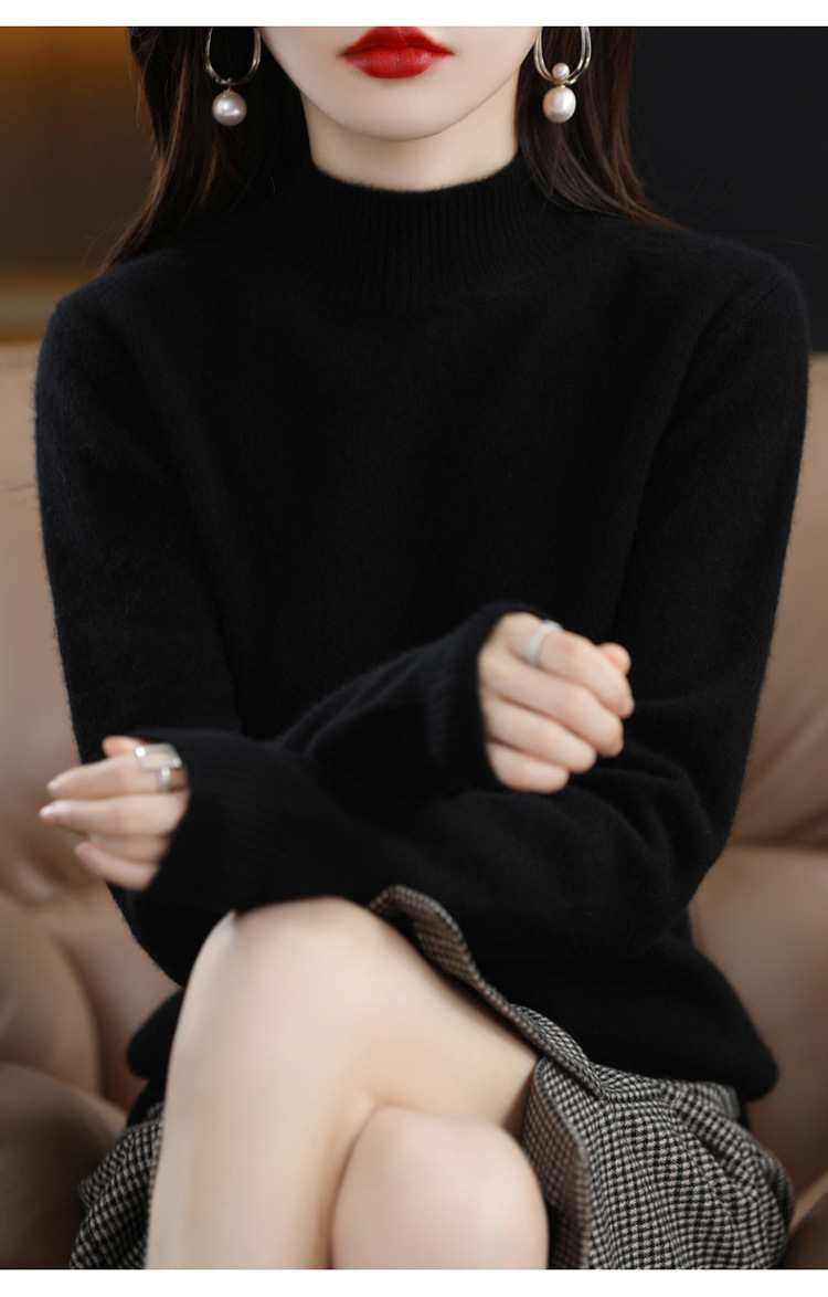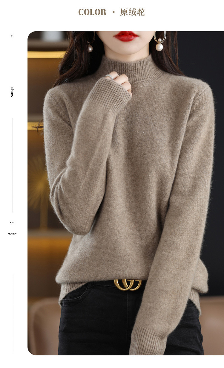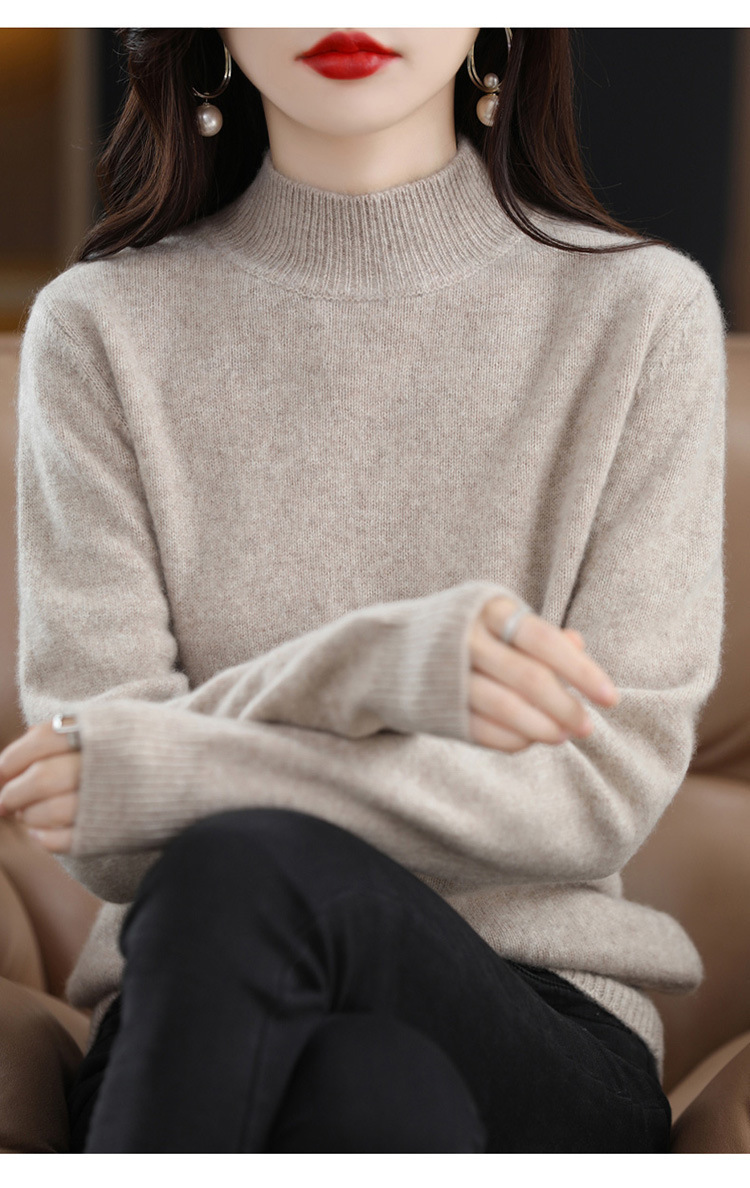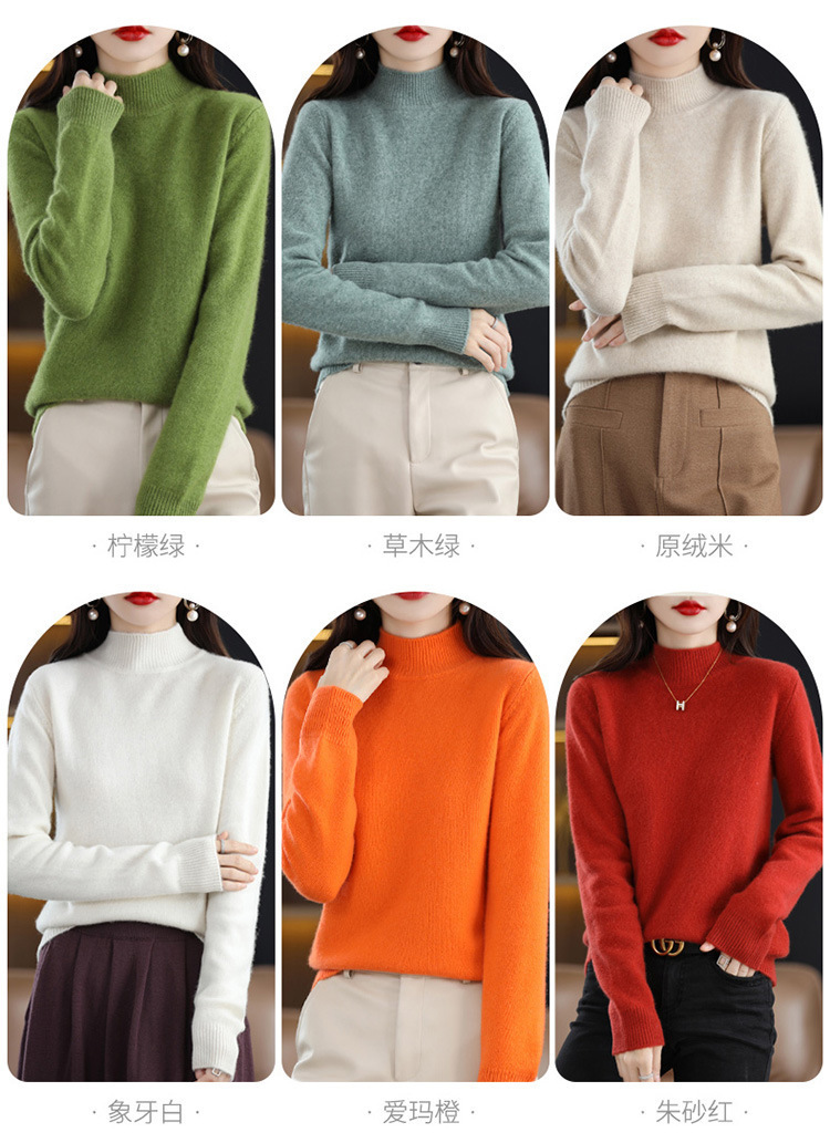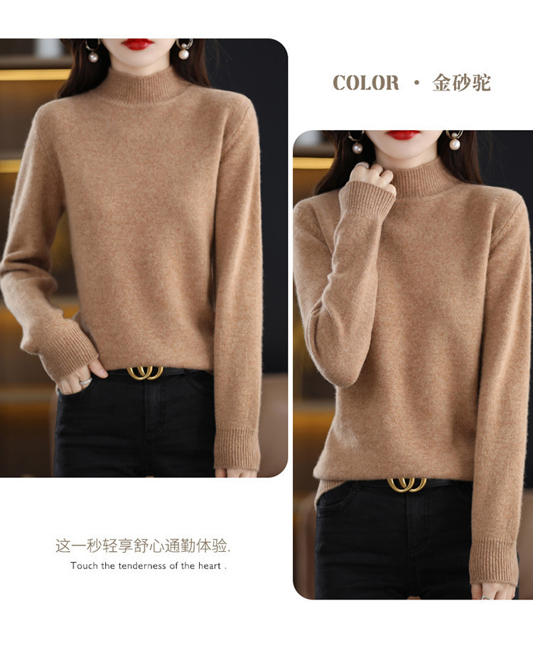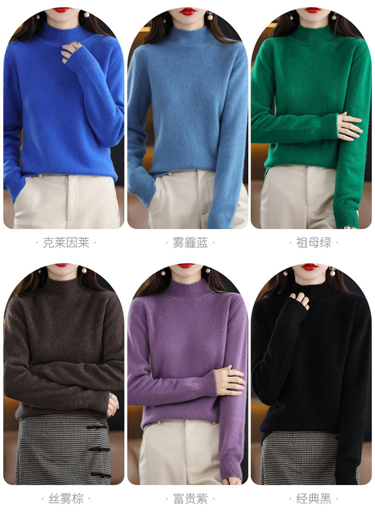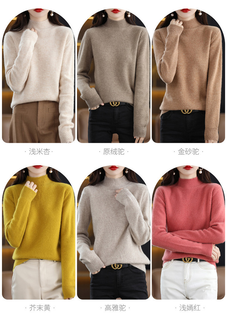 가을과 겨울 새로운 니트베이스 셔츠 플러스 사이즈 스웨터 여자 하프 터틀넥 솔리드 컬러 풀오버 스웨터 루즈 올매치