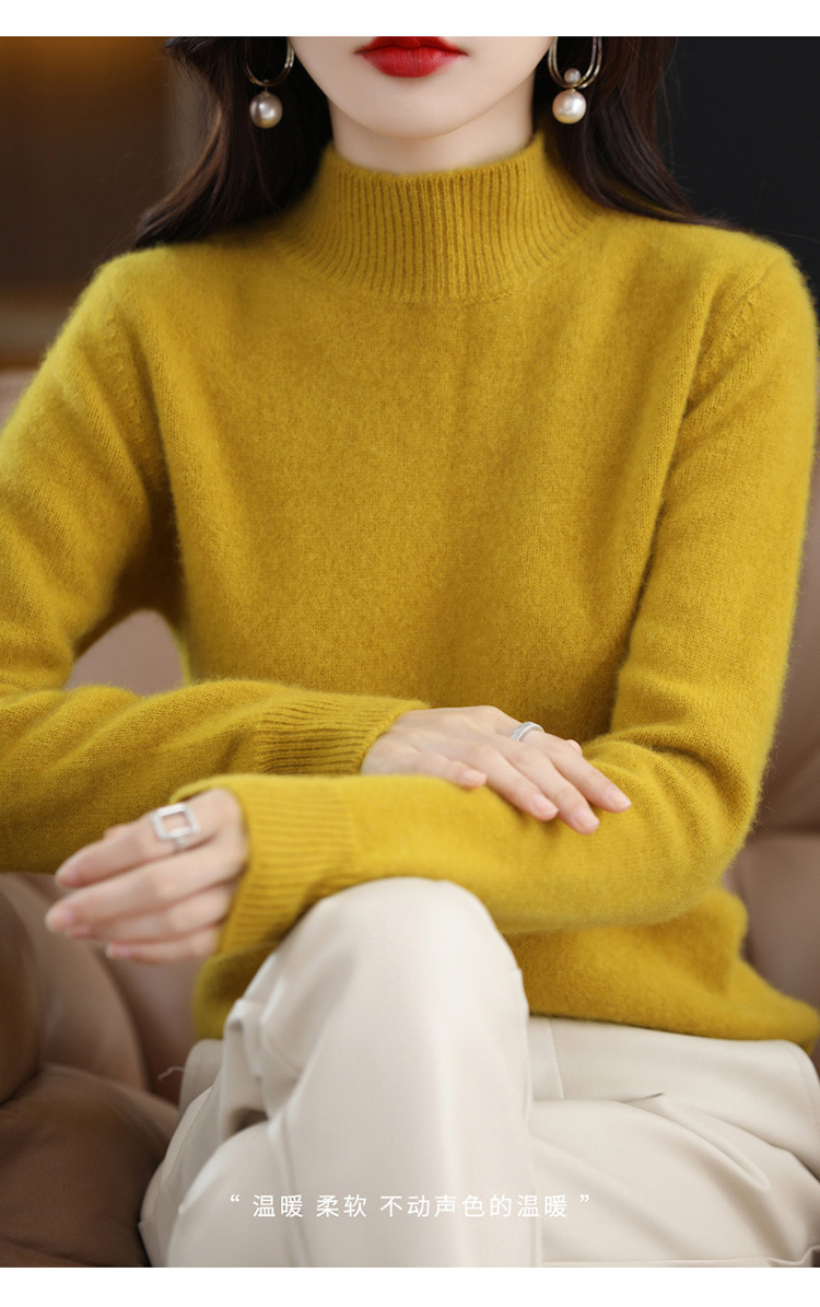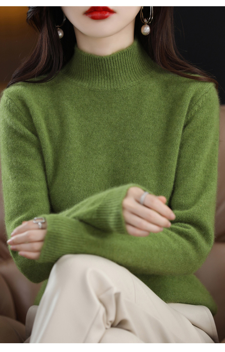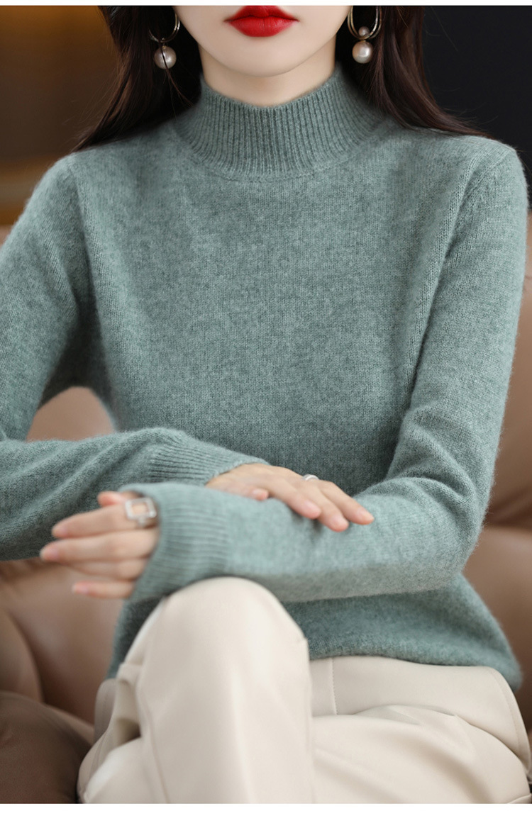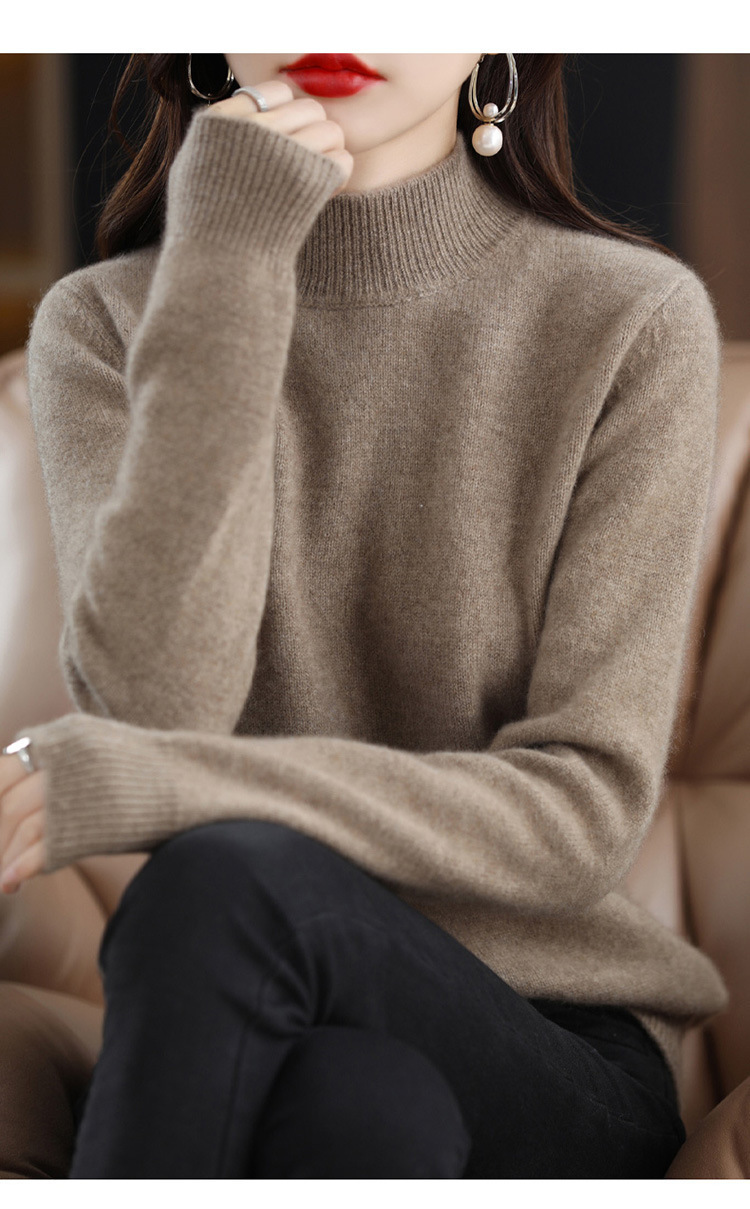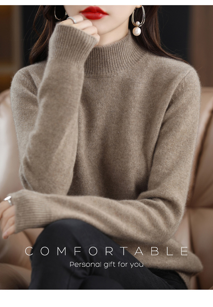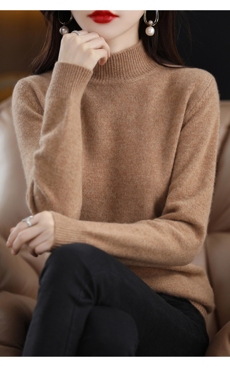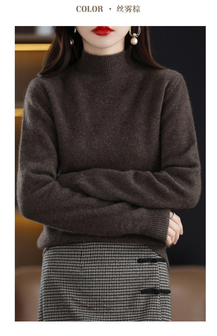가을과 겨울 새로운 니트베이스 셔츠 플러스 사이즈 스웨터 여자 하프 터틀넥 솔리드 컬러 풀오버 스웨터 루즈 올매치