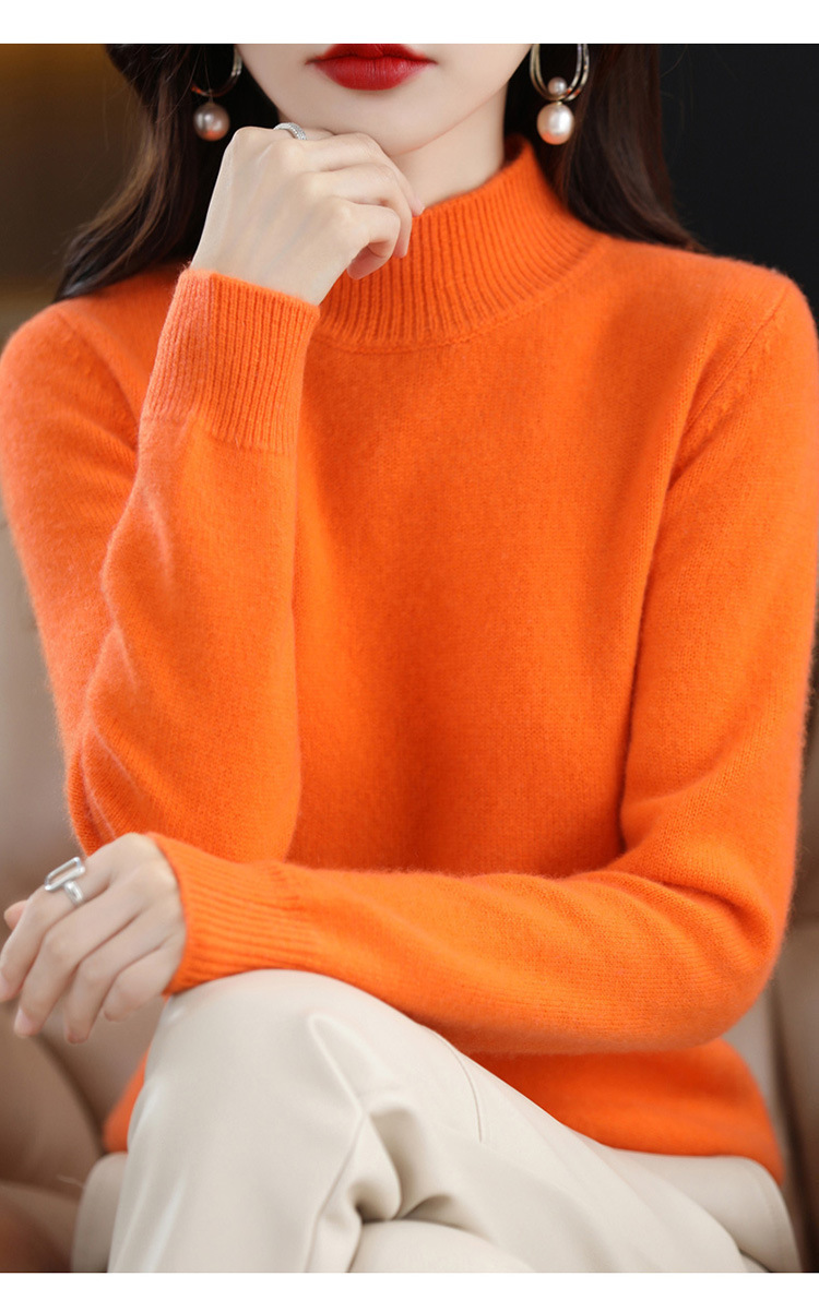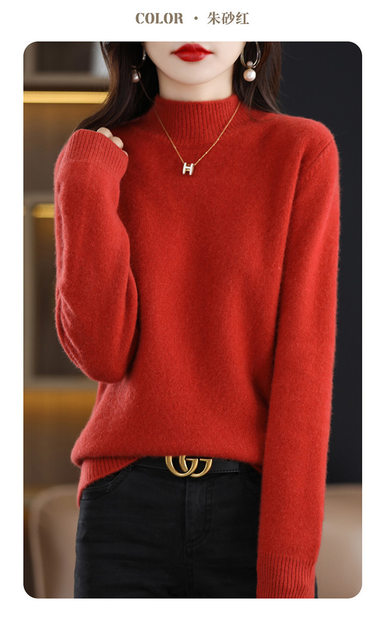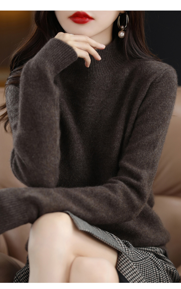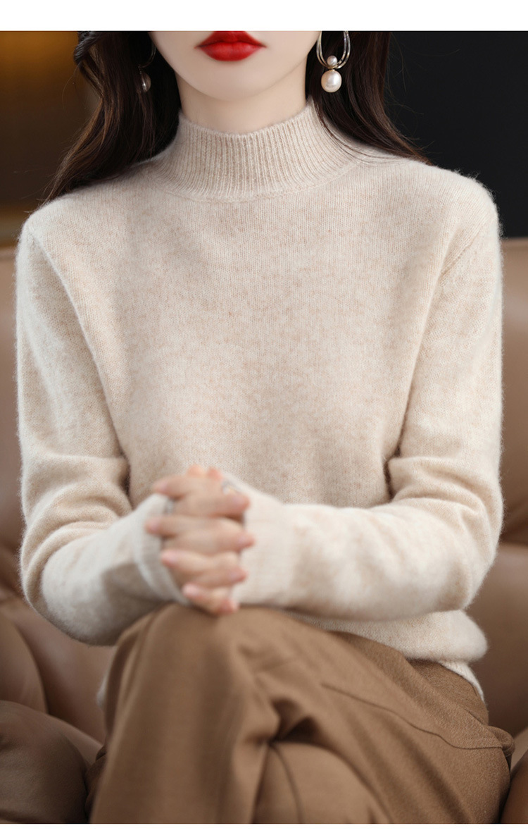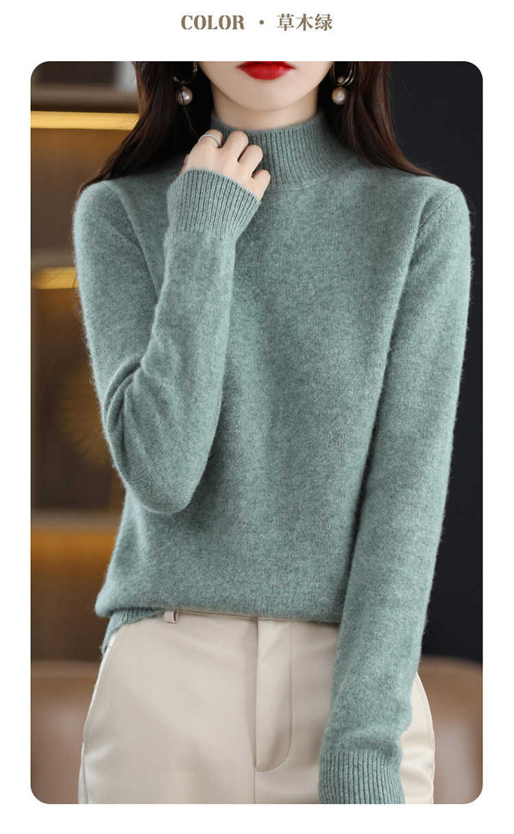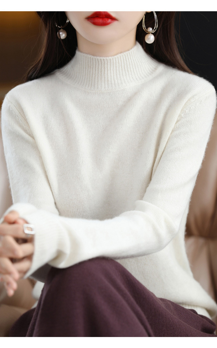 가을과 겨울 새로운 니트베이스 셔츠 플러스 사이즈 스웨터 여자 하프 터틀넥 솔리드 컬러 풀오버 스웨터 루즈 올매치