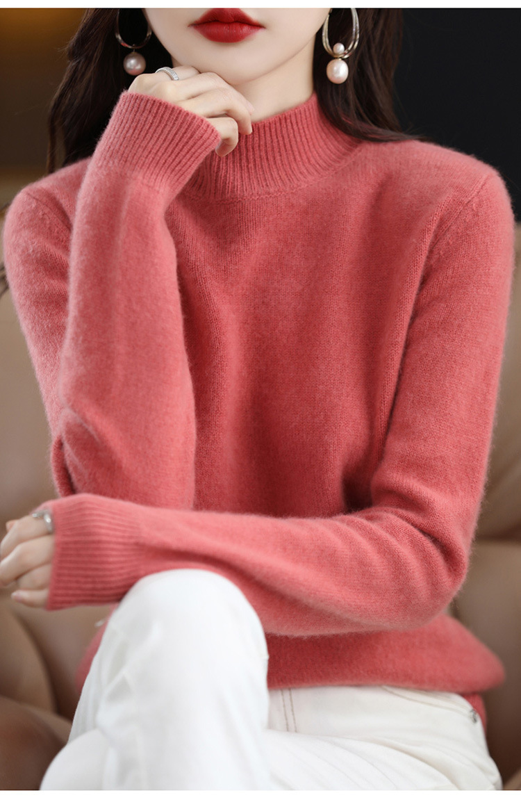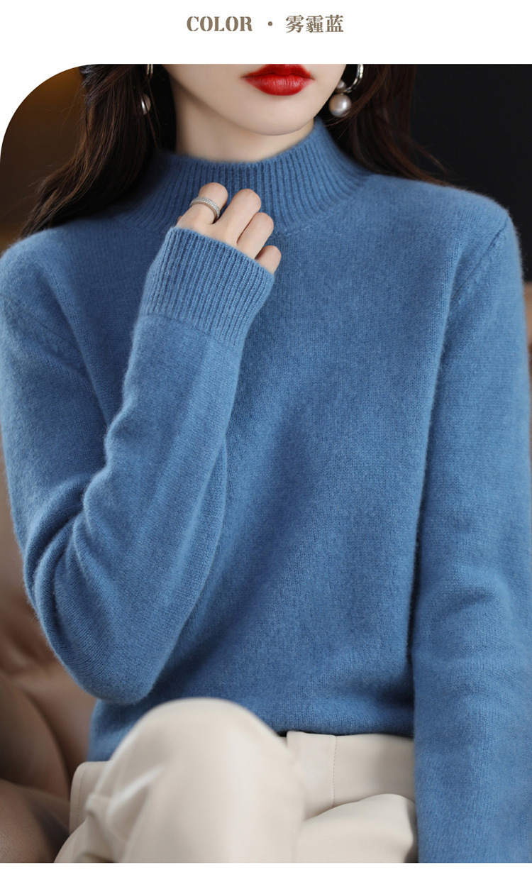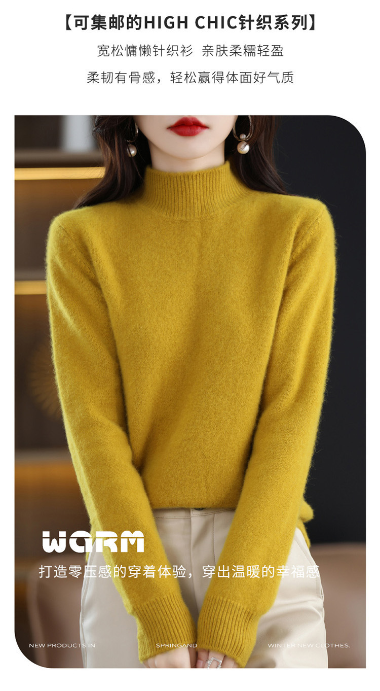 가을과 겨울 새로운 니트베이스 셔츠 플러스 사이즈 스웨터 여자 하프 터틀넥 솔리드 컬러 풀오버 스웨터 루즈 올매치스토어 가기