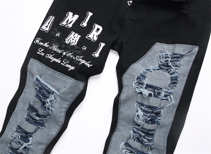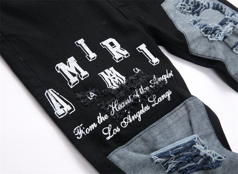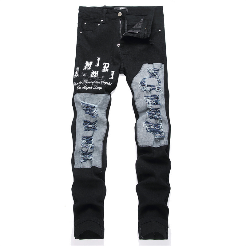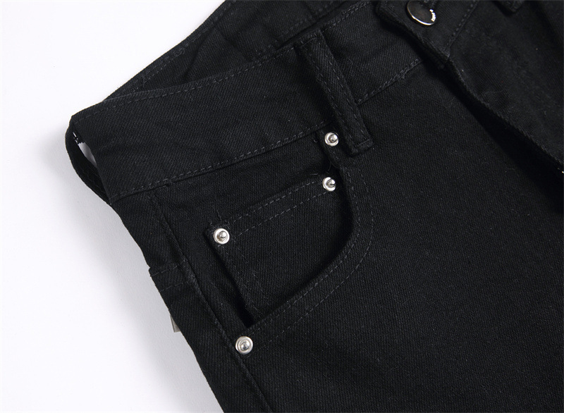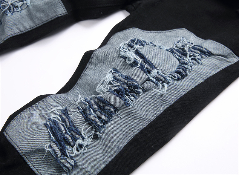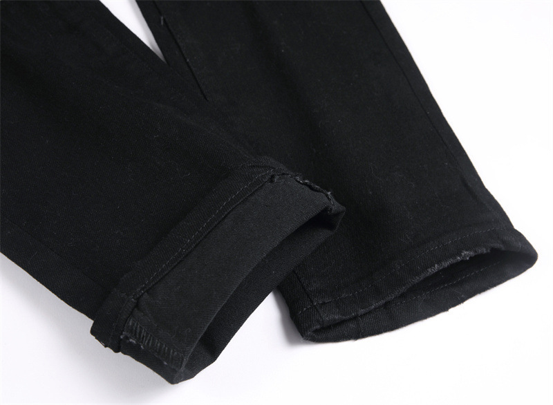 대외 무역 스타일 펑크 블랙 슬림 스트레치 옷감 자수 십대 스키니 남성 청바지 3881스토어 가기