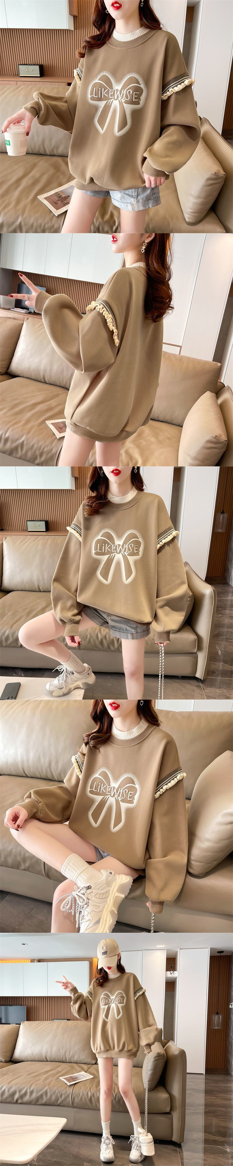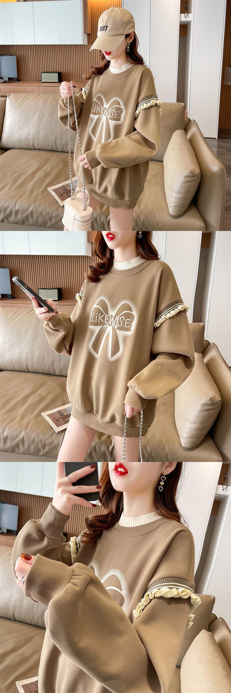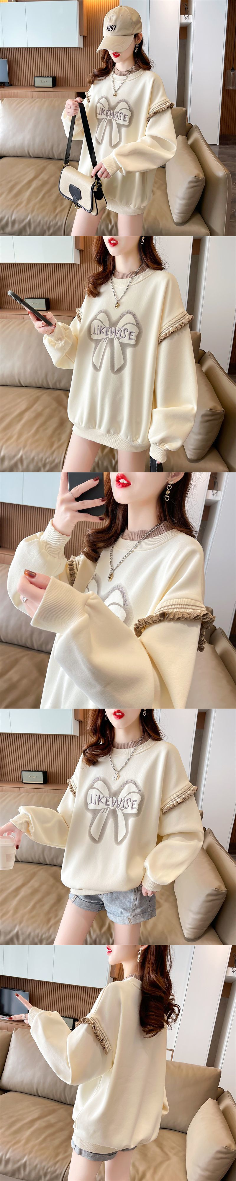 크루 넥 스웨트 셔츠 봄과 가을 한국 새로운 느슨한 얇은 디자인 틈새 투피스 레이스 재킷스토어 가기