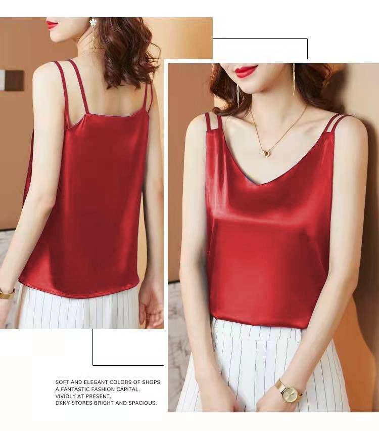 여름 새 V넥 카미솔 여자 솔리드 컬러 느슨한 민소매 아우터 올매치 톱 한국식 이너베이스 셔츠