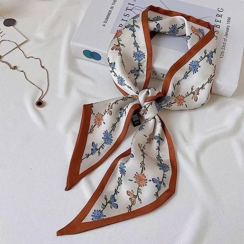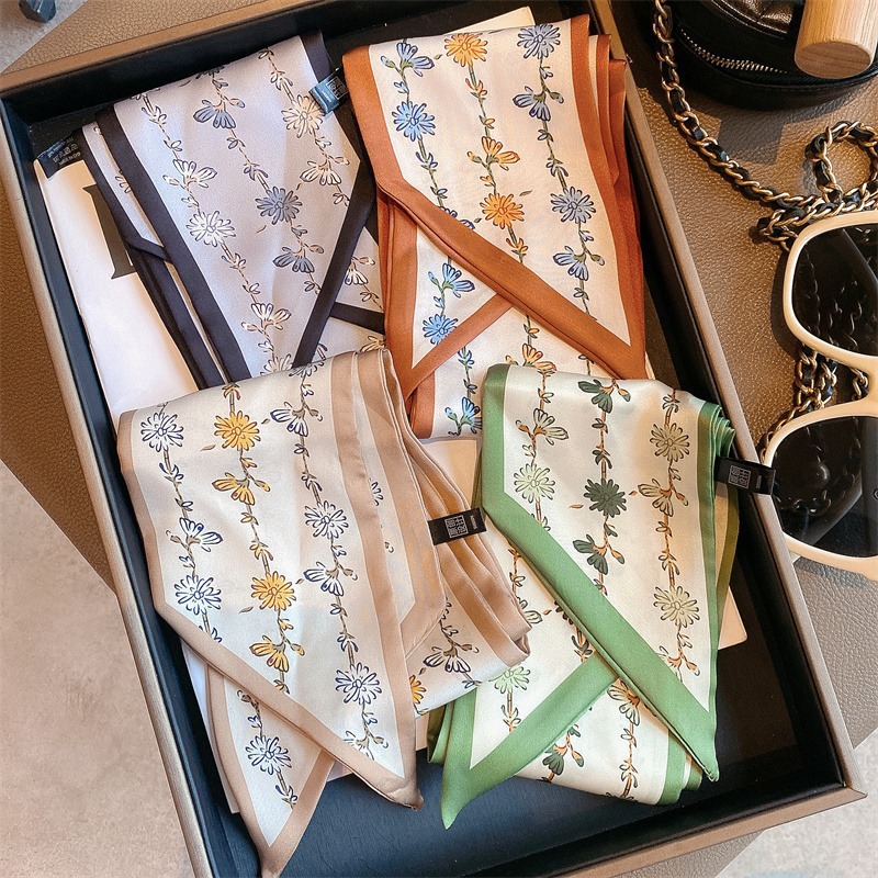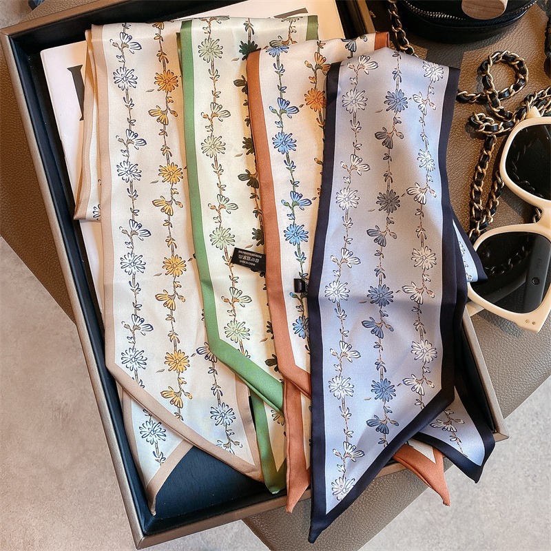 새로운 프랑스 스타일 레트로 실크 스카프 봄과 여름 꽃 리본 틈새 머리 넥타이 가방 작은 리본 모든 경기 장식 스카프스토어 가기