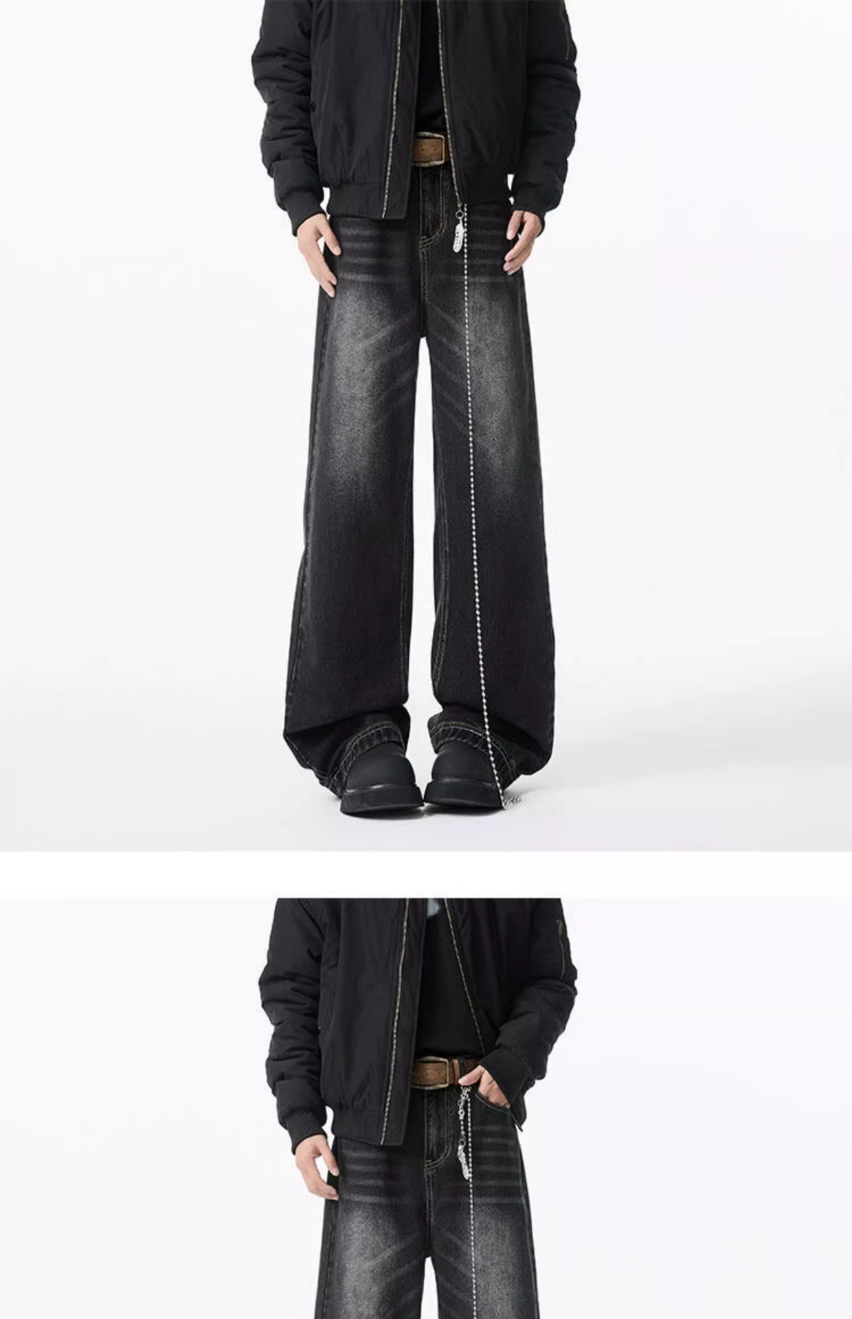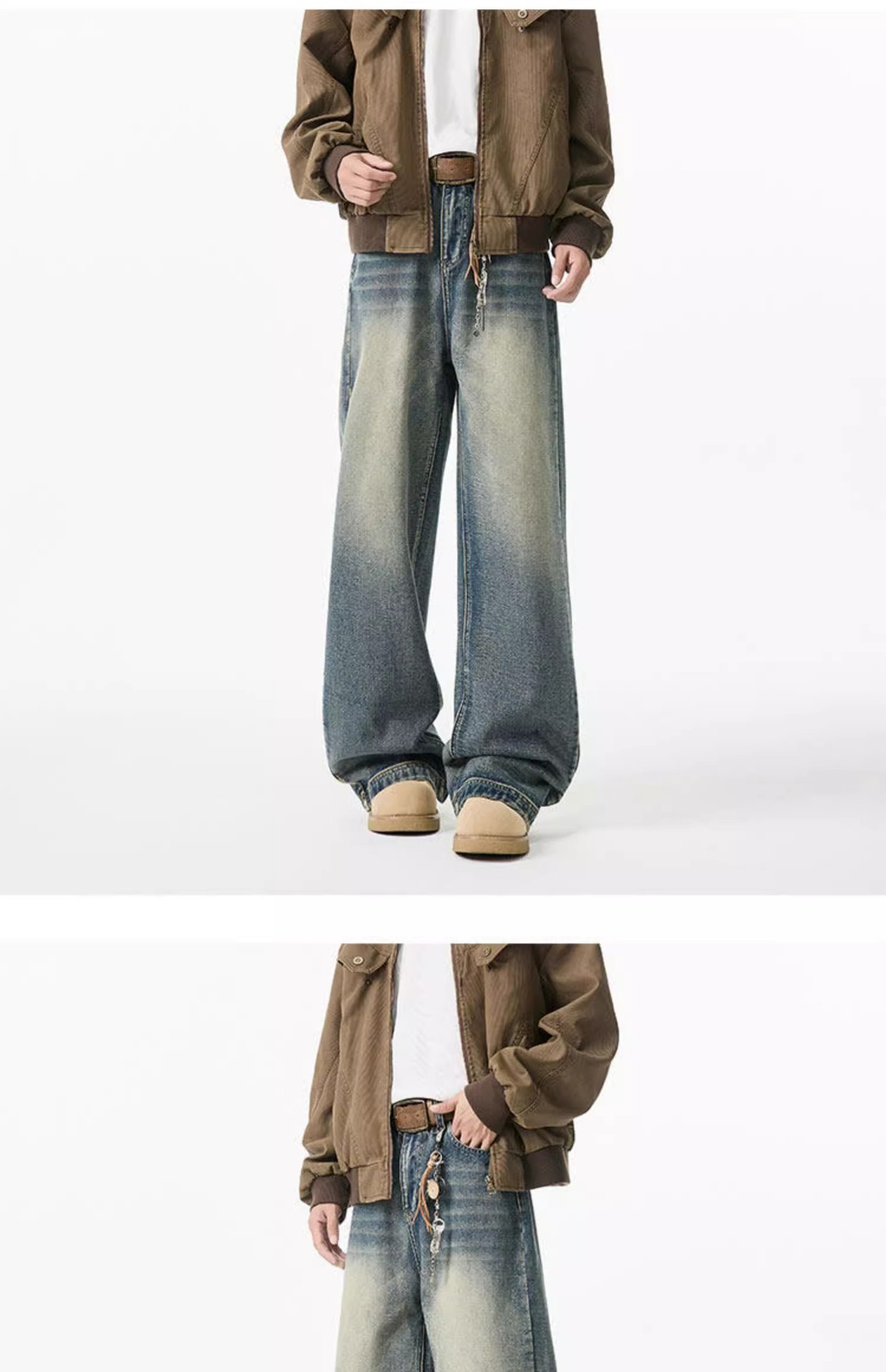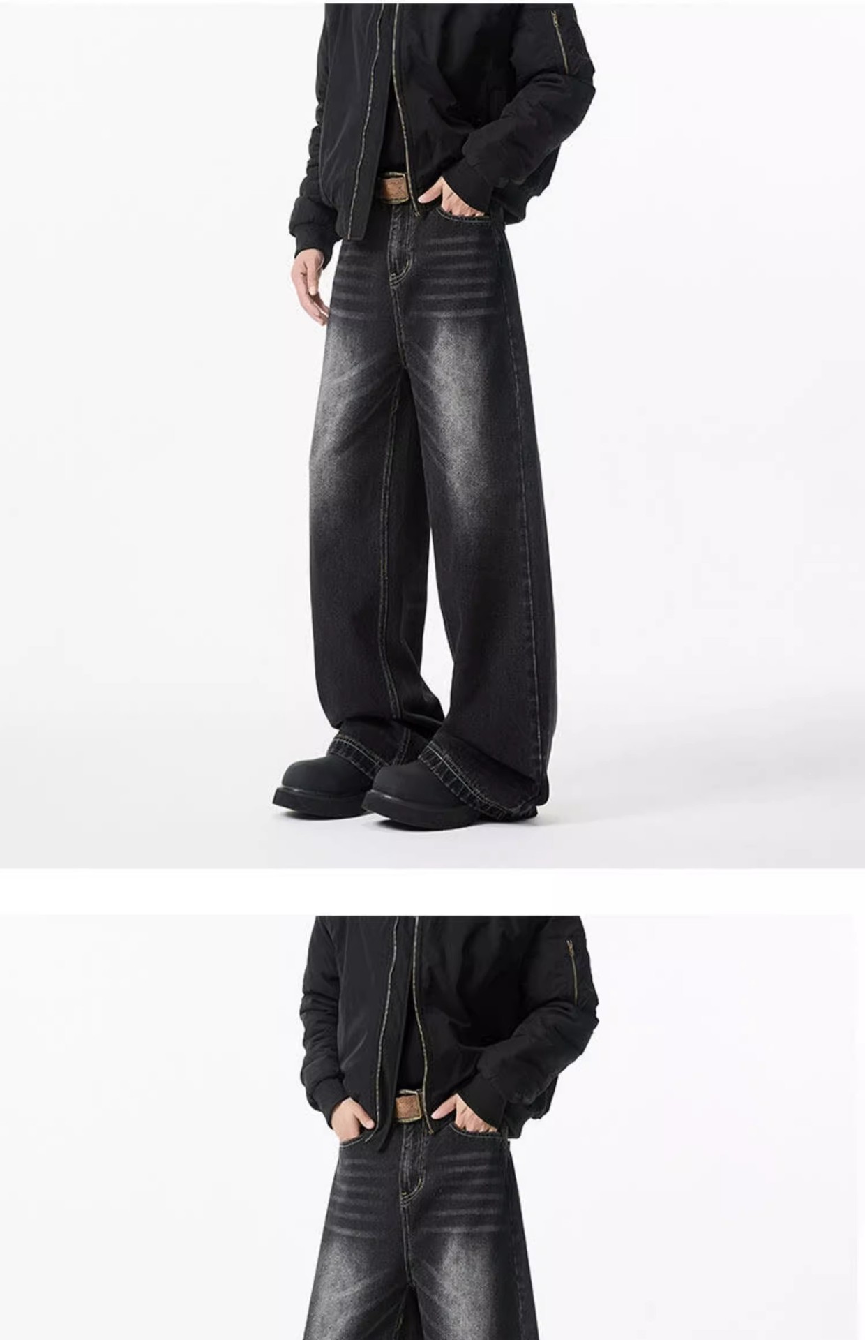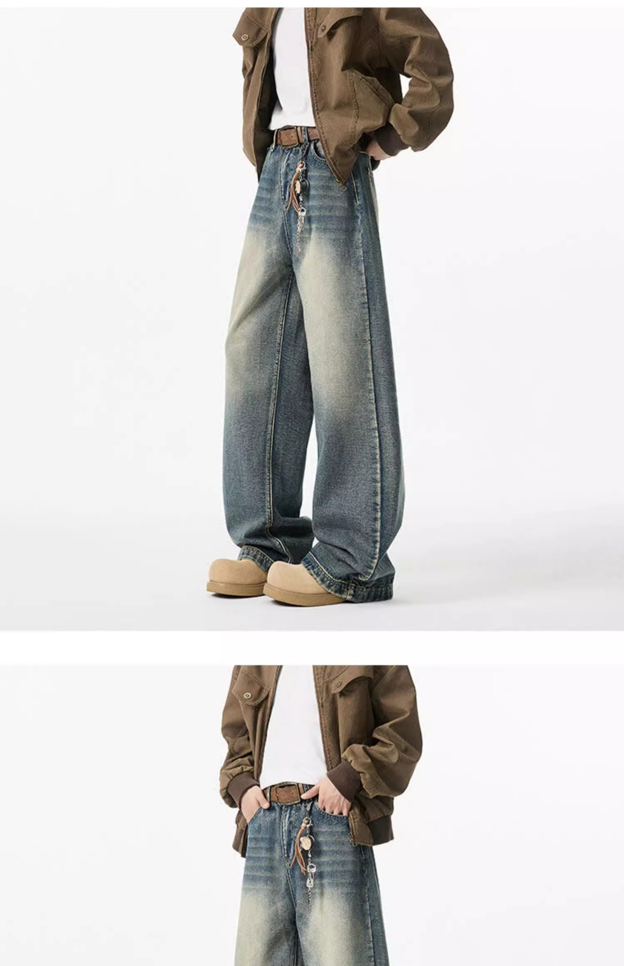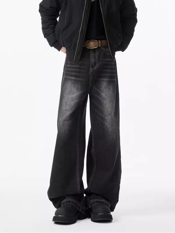 청결한 청바지 남자 봄 2025 새로운 남자 넓은 다리 바지 미국 스타일 하이 스트리트 스트레이트 바지 소년스토어 가기