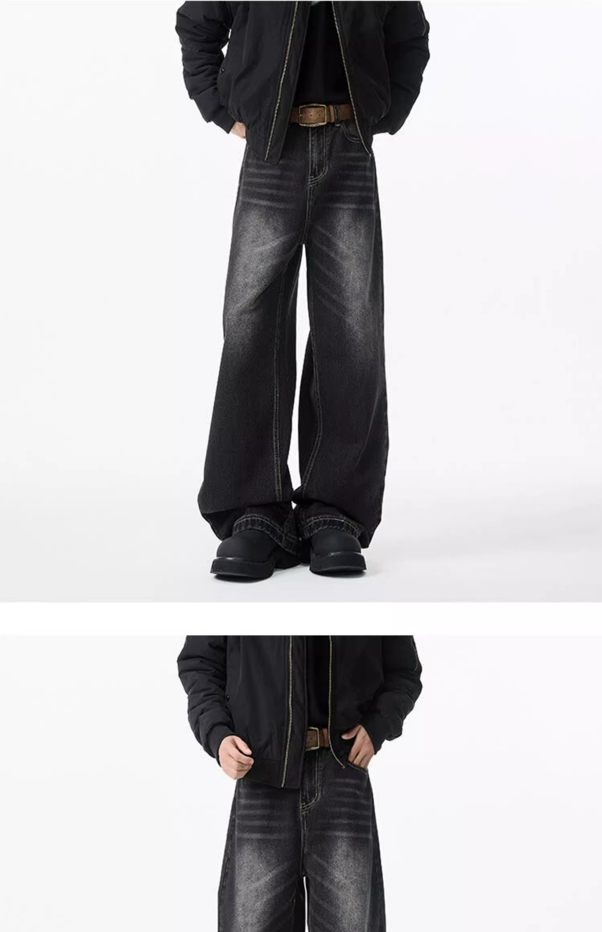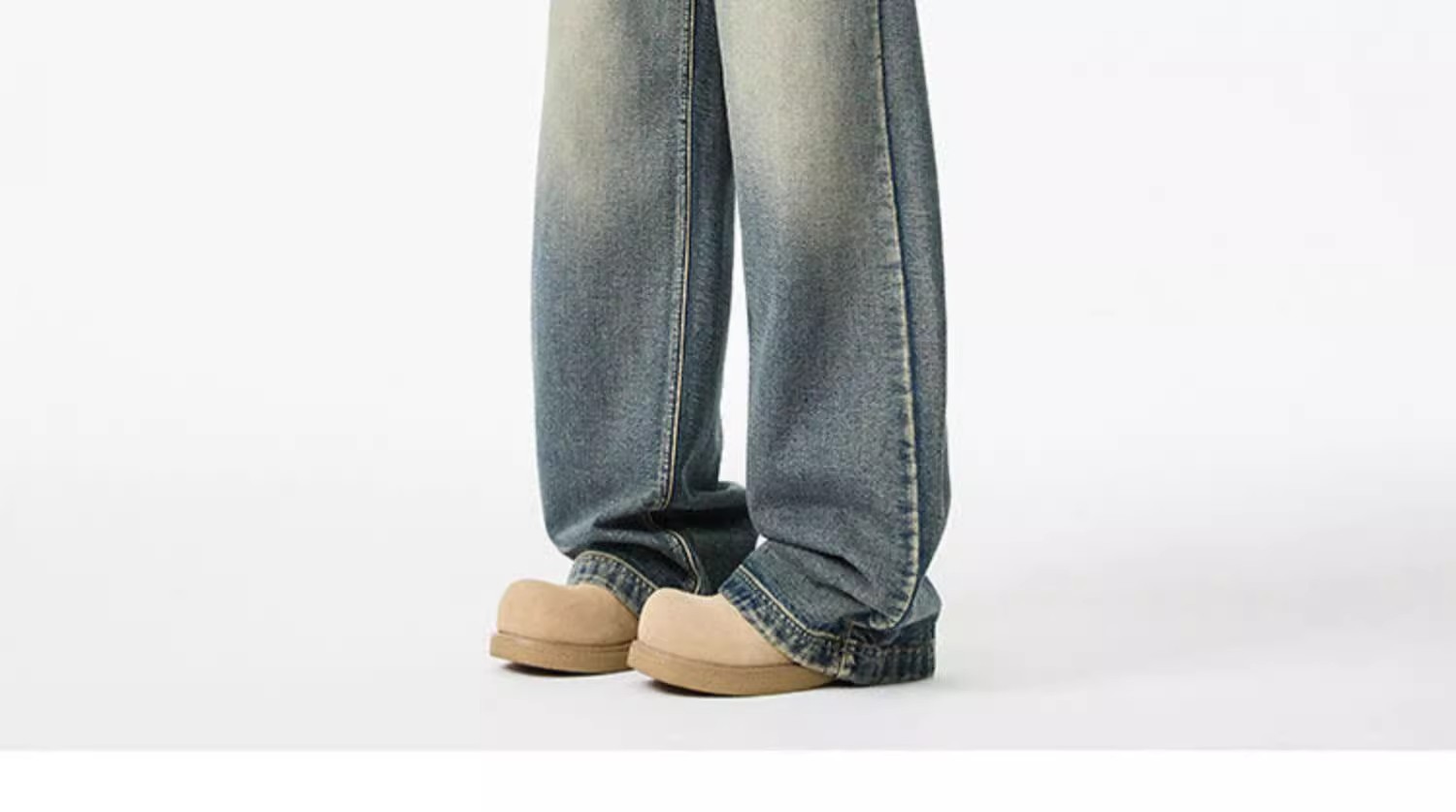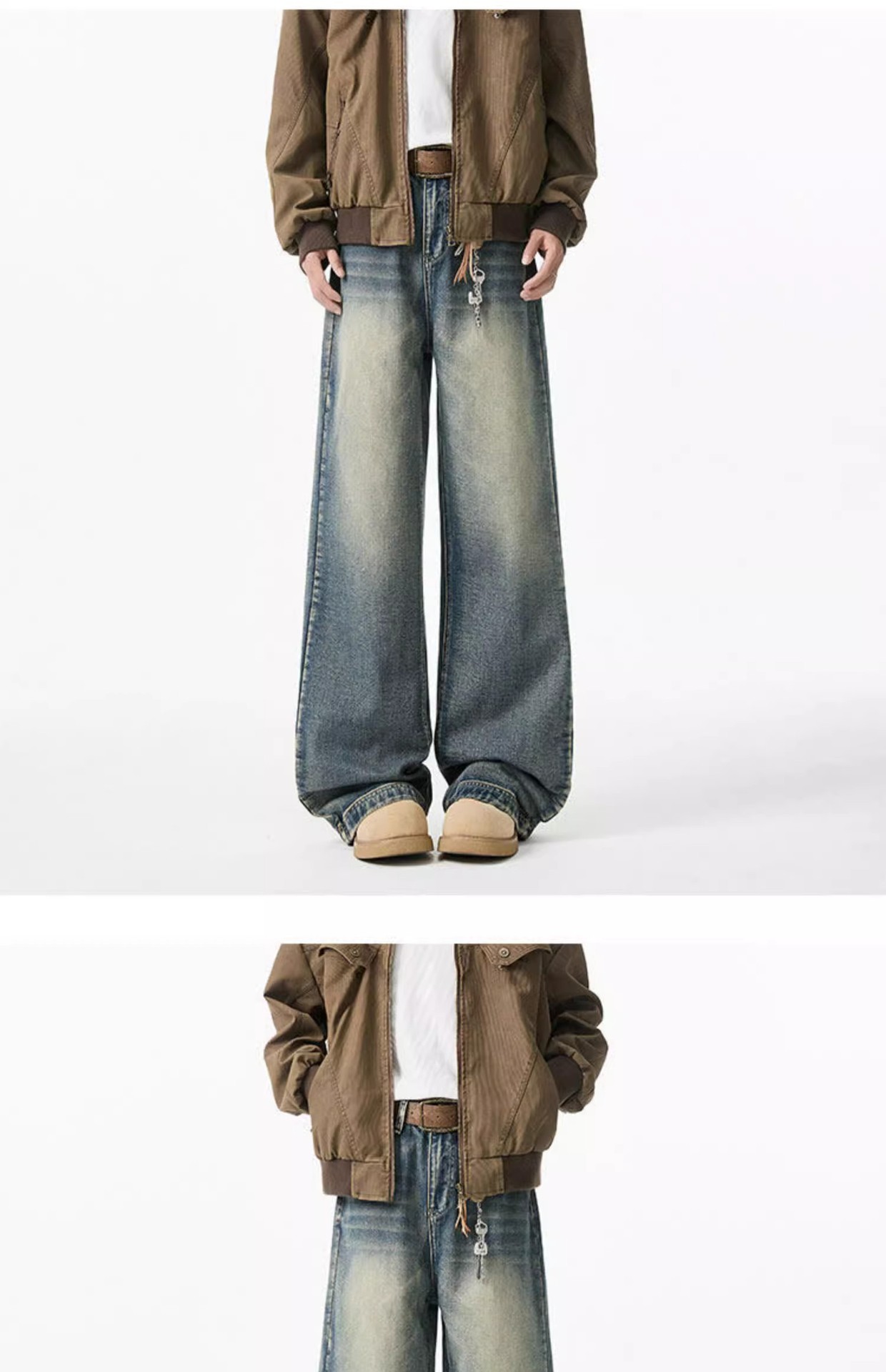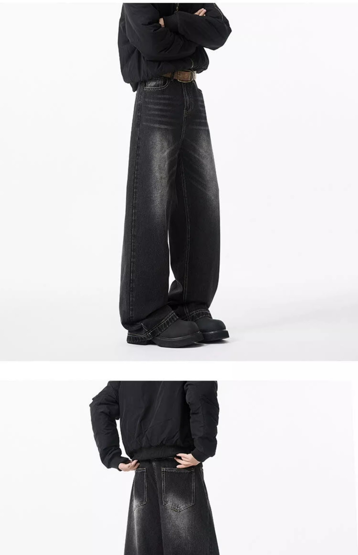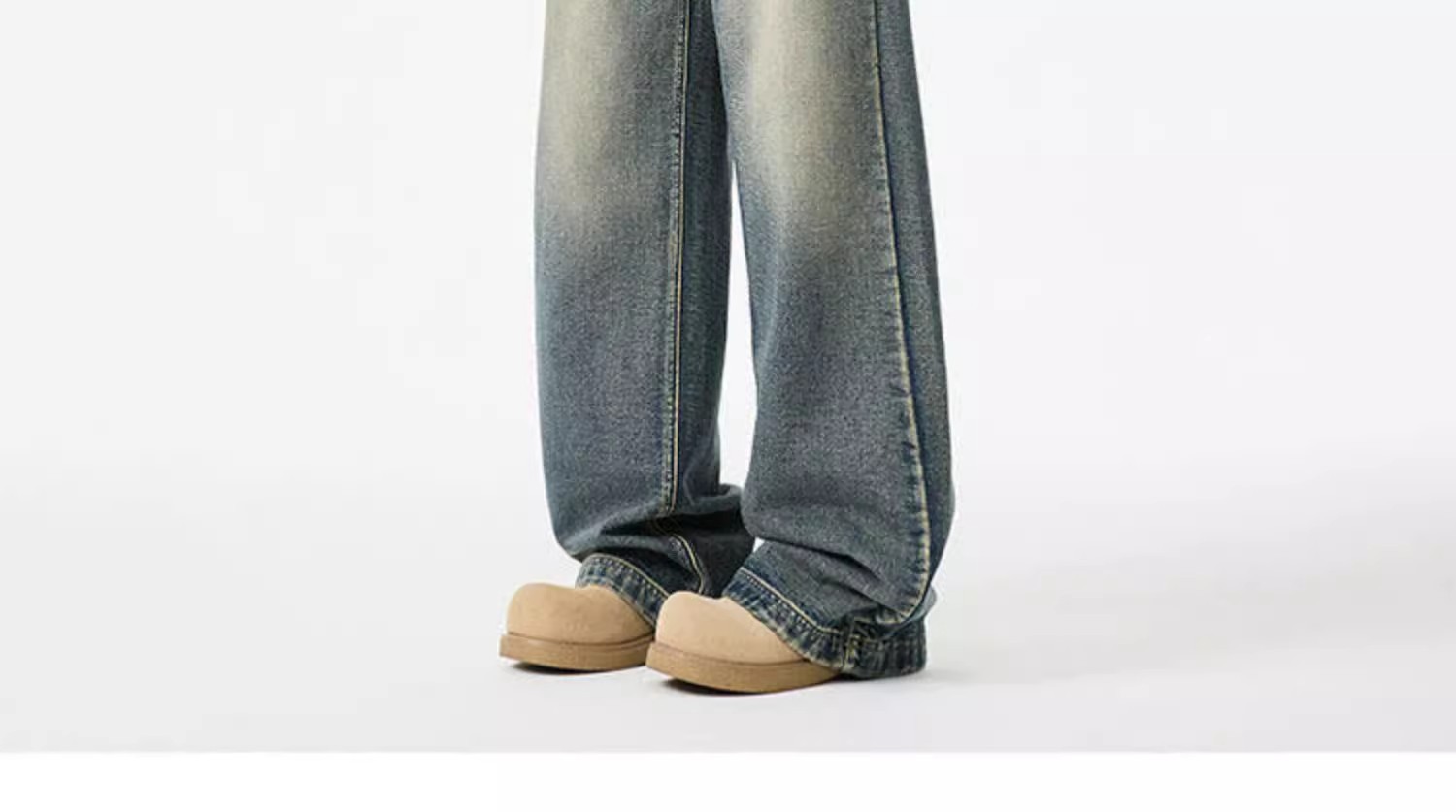 청결한 청바지 남자 봄 2025 새로운 남자 넓은 다리 바지 미국 스타일 하이 스트리트 스트레이트 바지 소년스토어 가기
