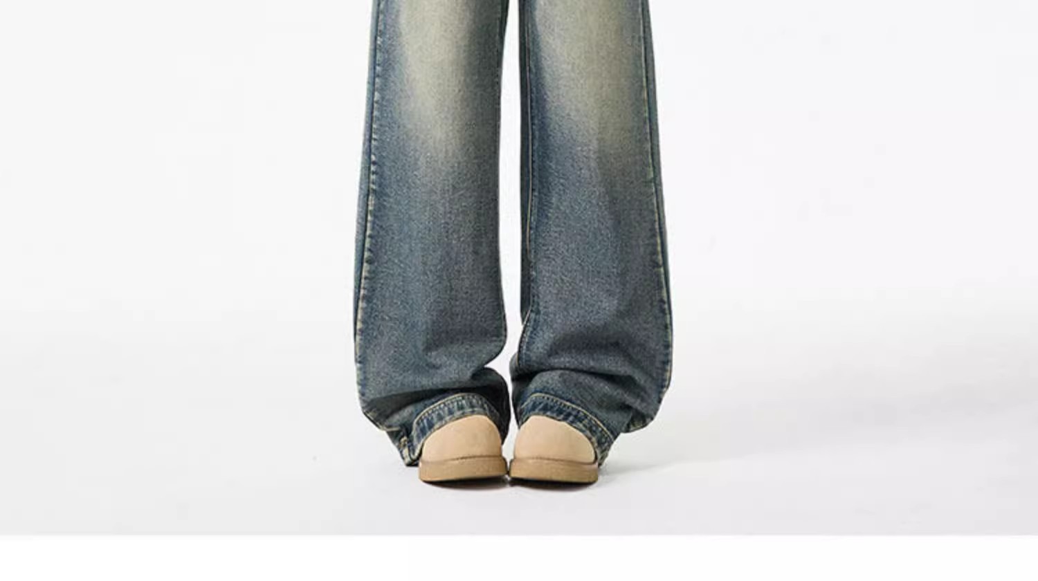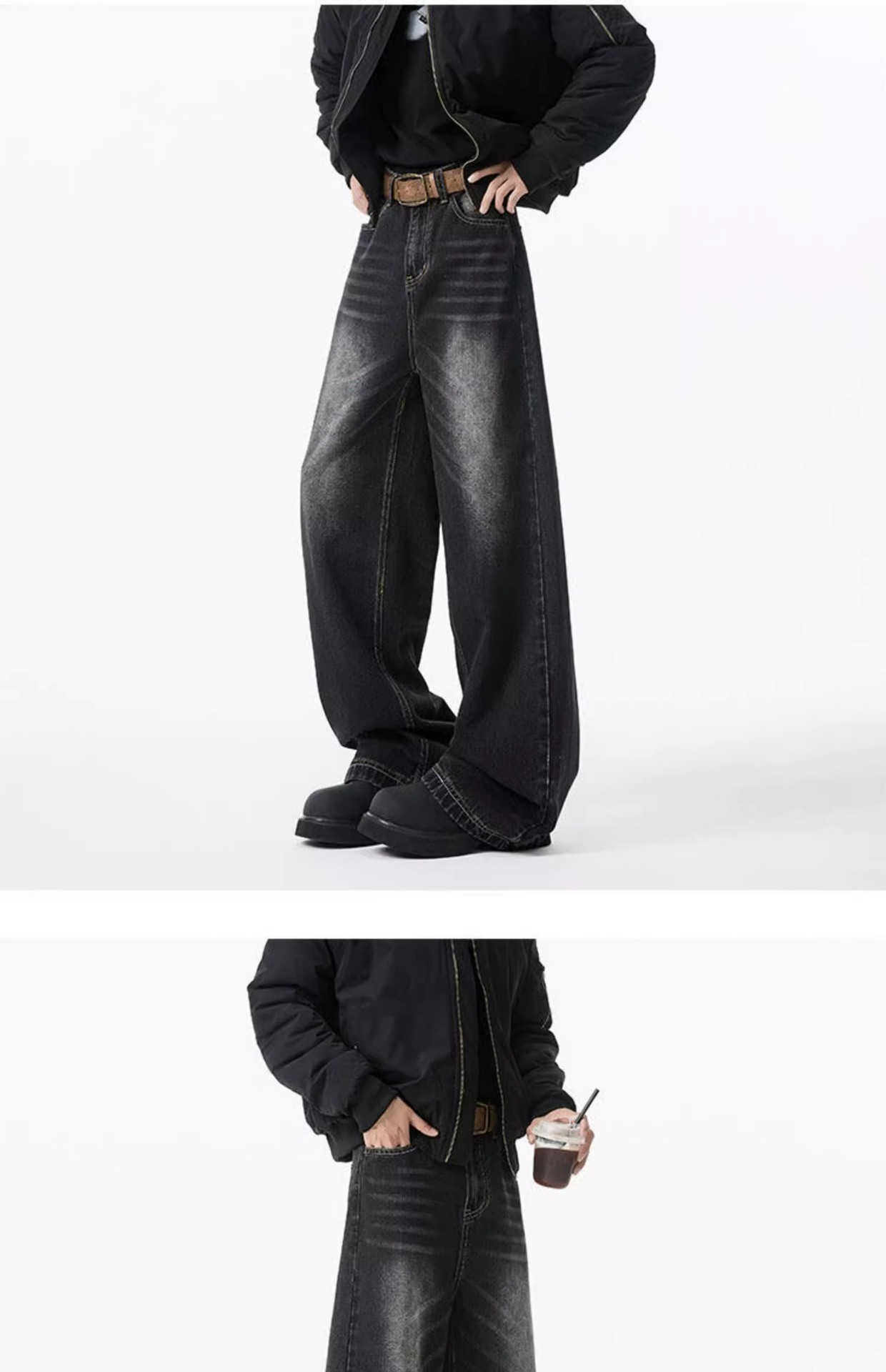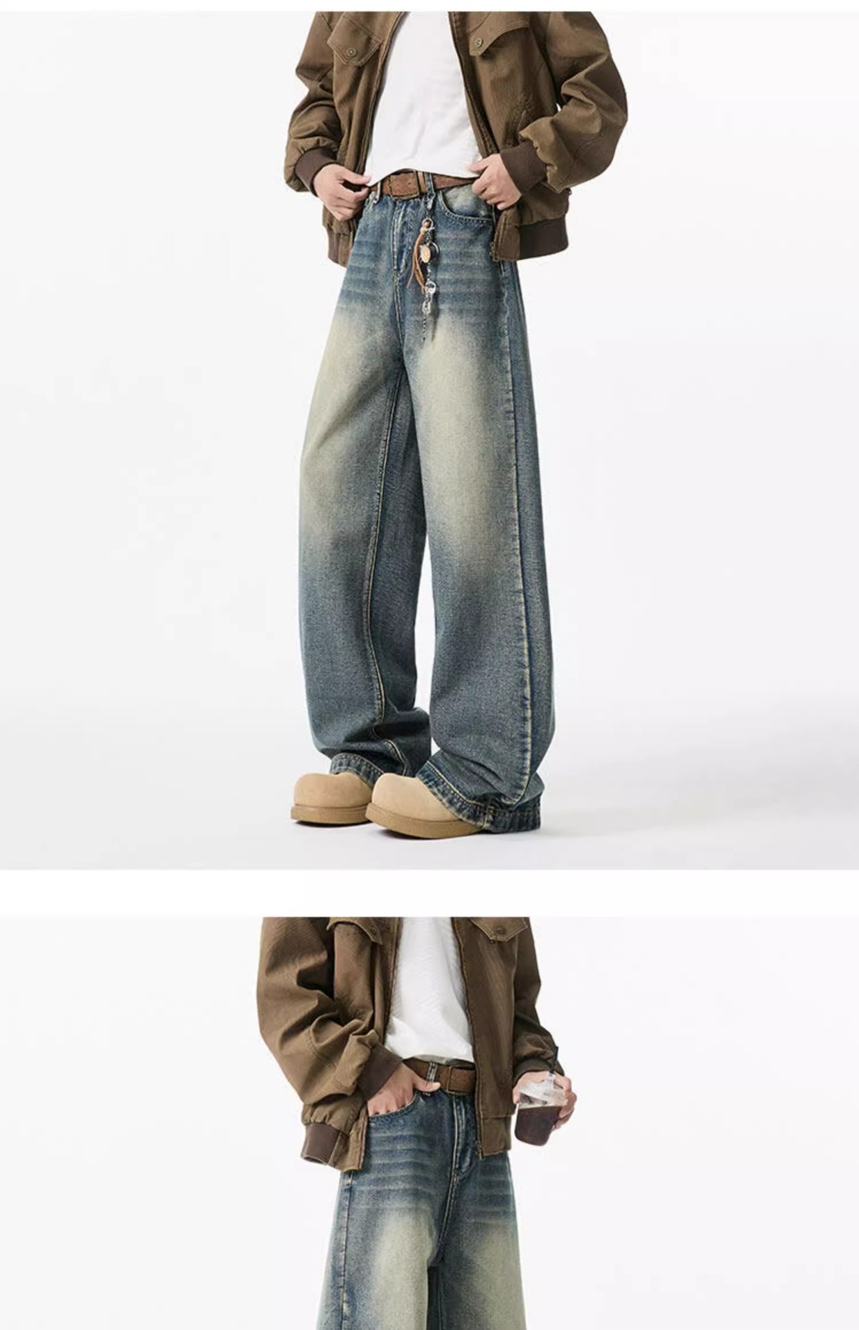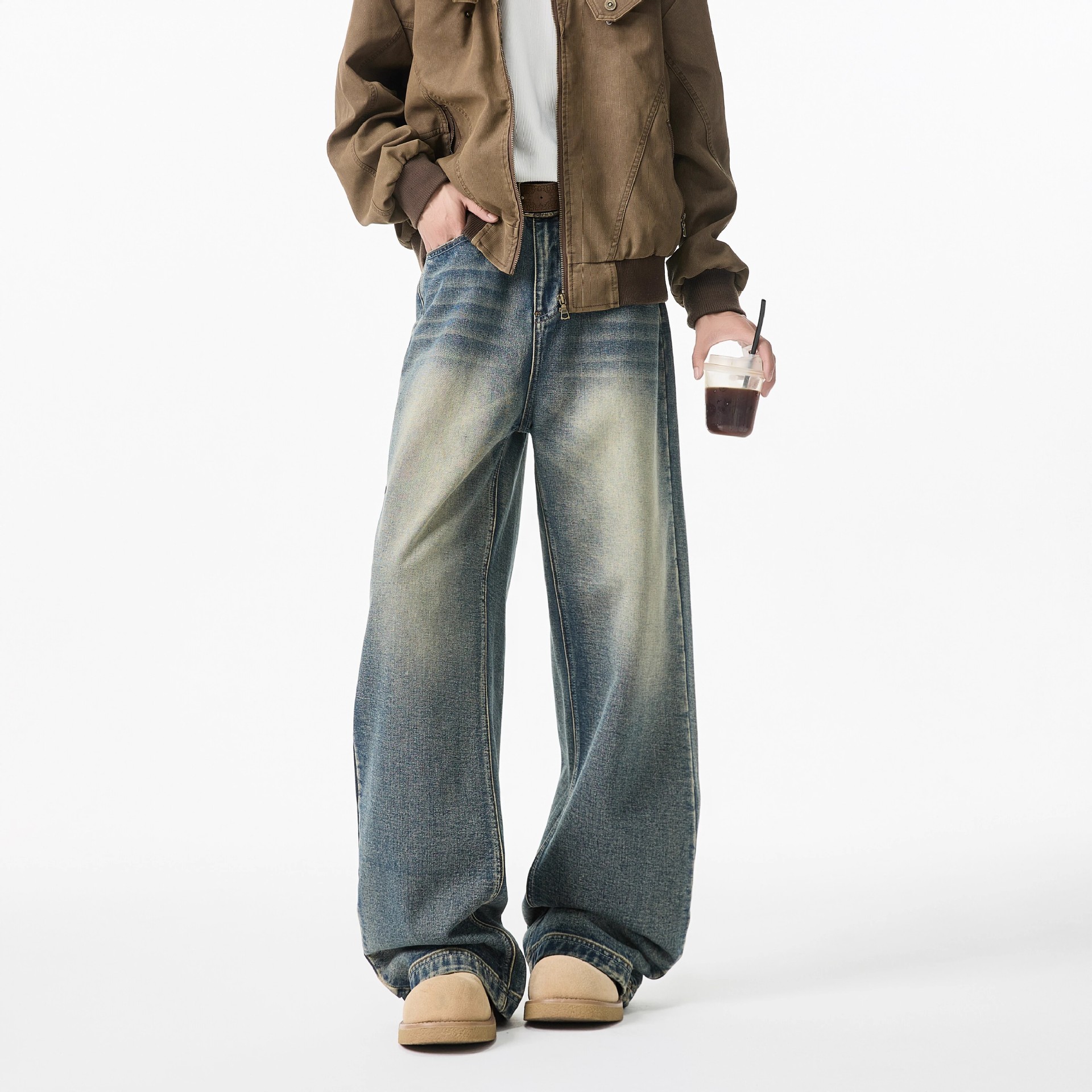 청결한 청바지 남자 봄 2025 새로운 남자 넓은 다리 바지 미국 스타일 하이 스트리트 스트레이트 바지 소년
