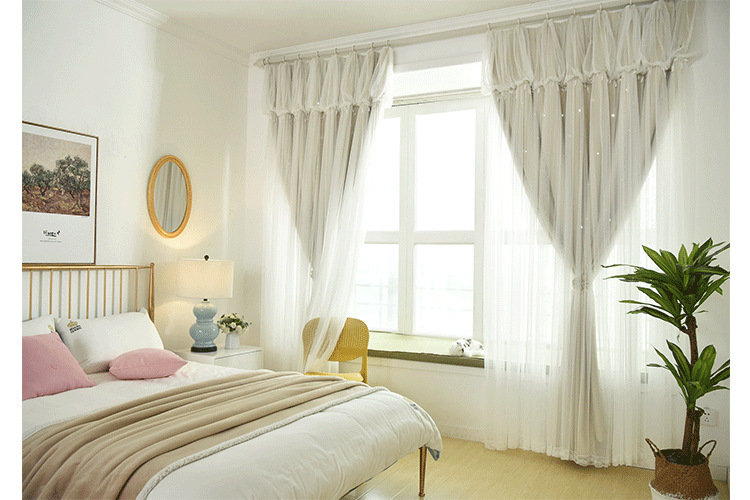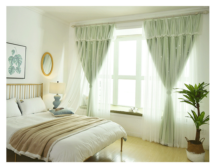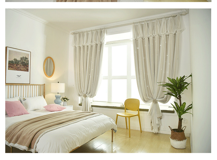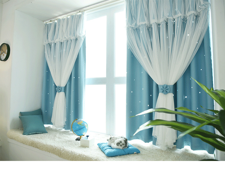새로운 한국식 침실 공주 커튼 완성 된 창 화면 커튼 음영 간단한 현대스토어 가기