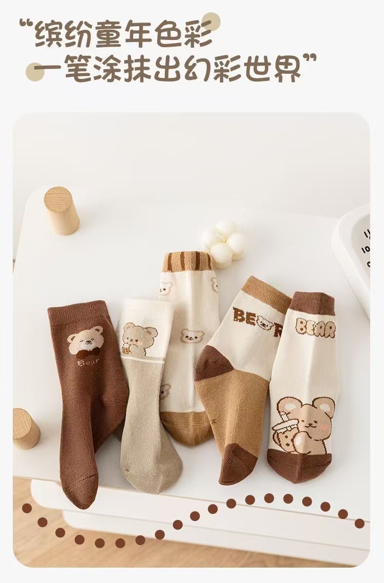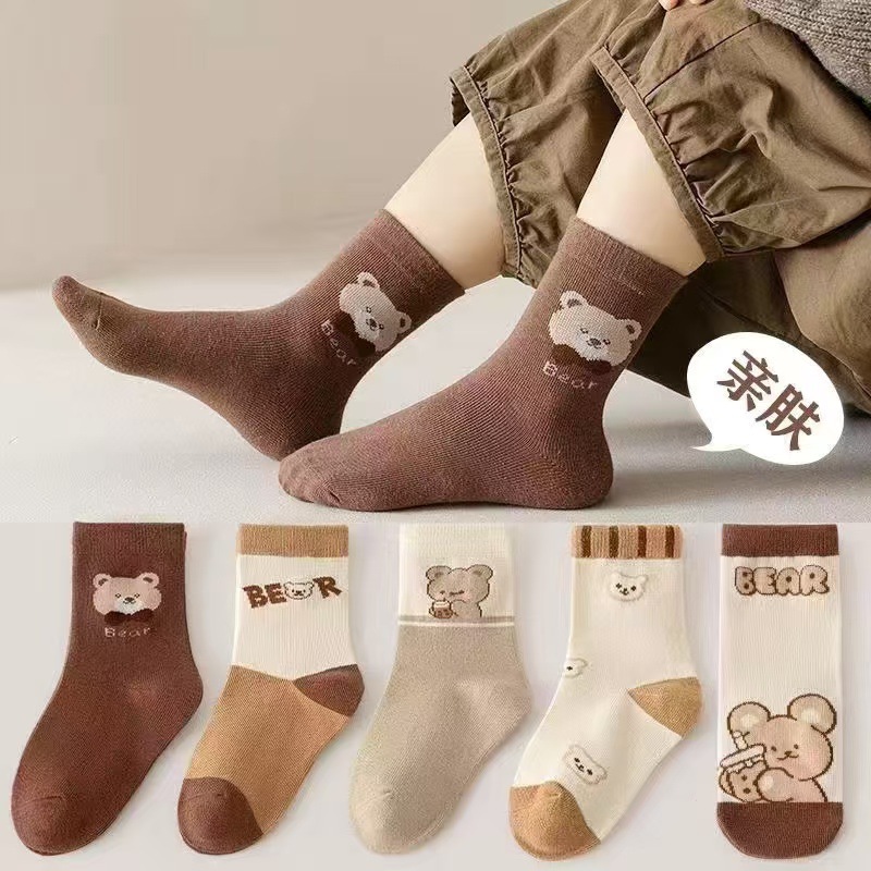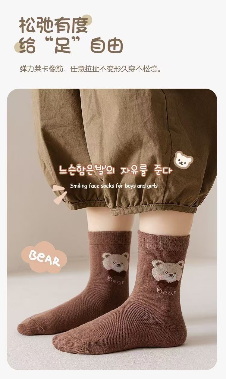 어린이 양말 봄과 가을 만화 중간 튜브 양말 소녀 양말 봄과 여름 통기성 땀 흡수성 소녀 아기 학생 양말