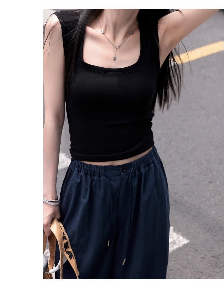 여름 순수한면 어깨 카미 솔 조끼 여성 내부 패션 세련된 유행 보틀 스파이스 소녀 탑 여름 짧은 아우터웨어스토어 가기