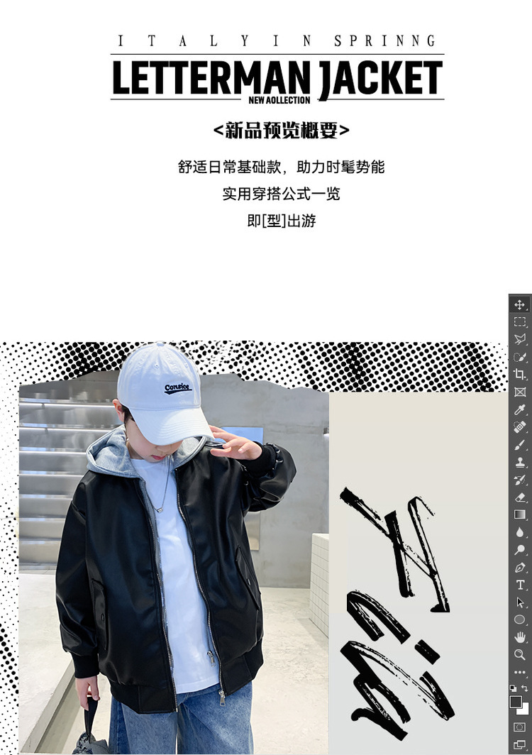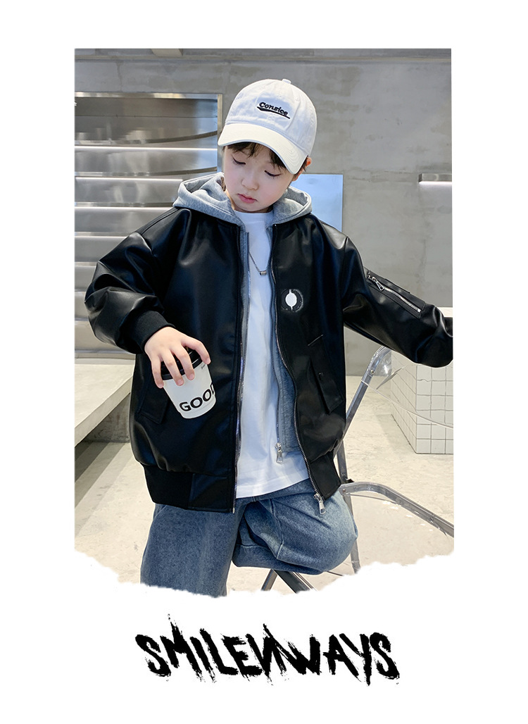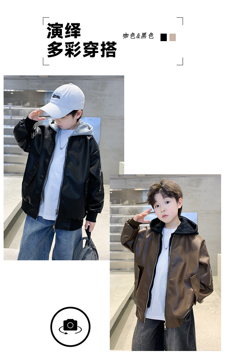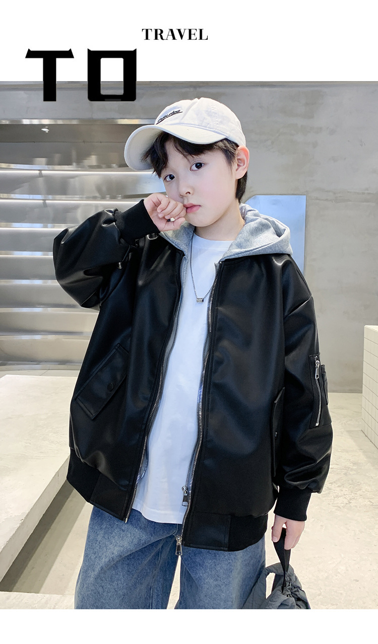 소년 코트 봄과 가을 2025 새로운 소년 어린이 가죽 자켓 서양식 중대형 키즈 후드 캐주얼 자켓스토어 가기