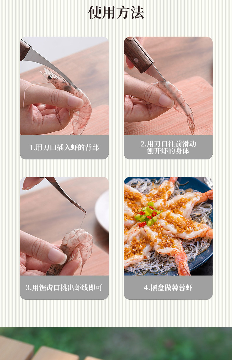 공장 아울렛 새우 라인 나이프 오픈 백 픽업 새우 라인 도구 새우 스트립 새우 라인 칼 가정용 주방 새우 스트립 도구 재고스토어 가기