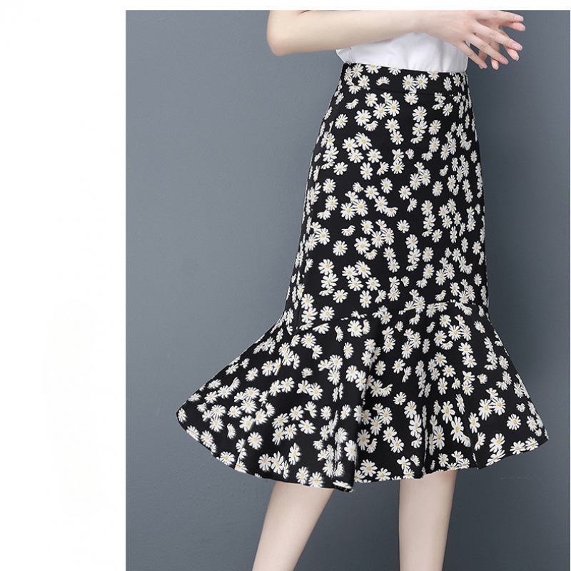• 프리스타일 피쉬테일 스커트 블랙 데이지 (안감 없음, 불투명)