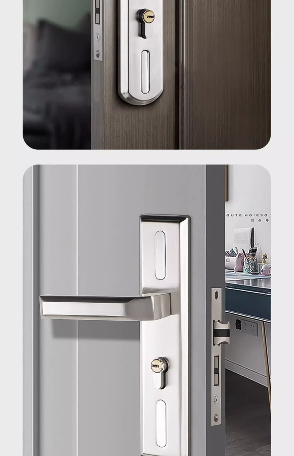 • 가정용으로 권장 - [E형 곡선형 손잡이 달빛 은색 - 조절 가능한 두꺼운 패널] - [전체 세트에는 열쇠가 포함되어 있습니다] 135-48 자물쇠 본체