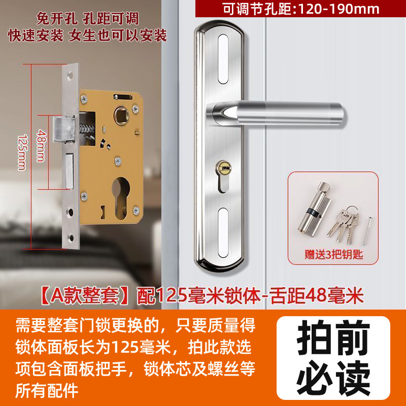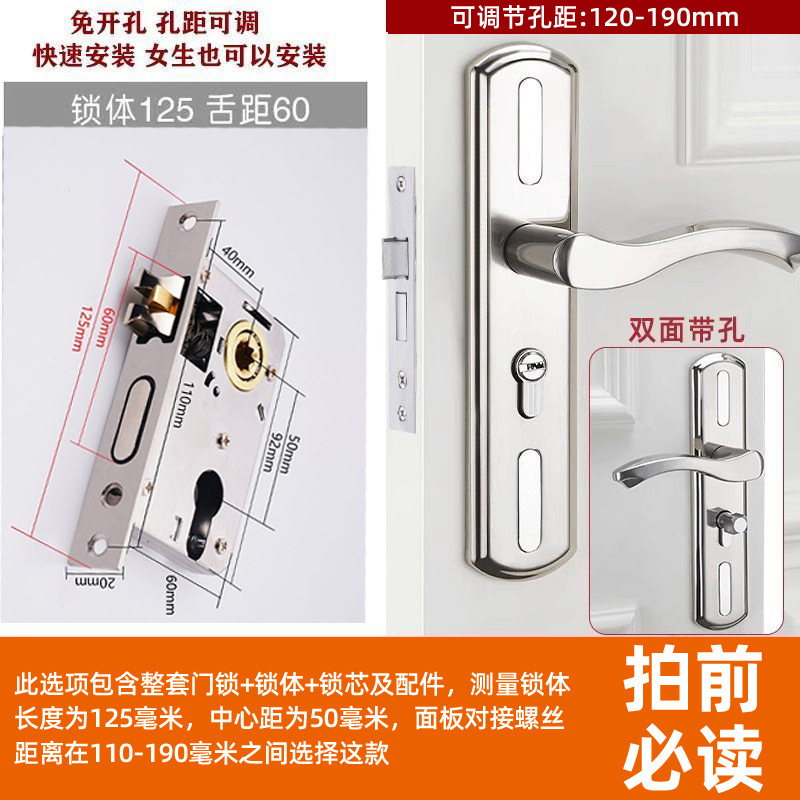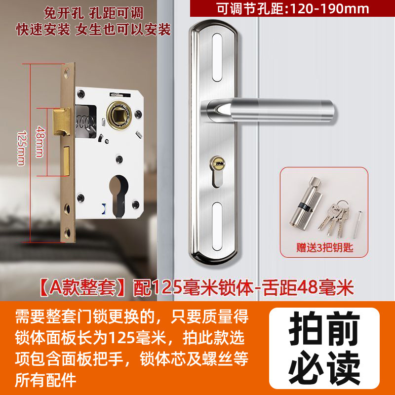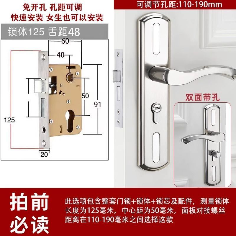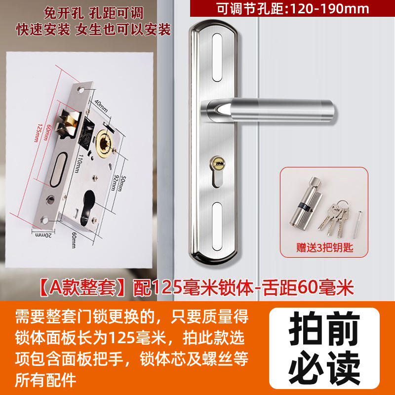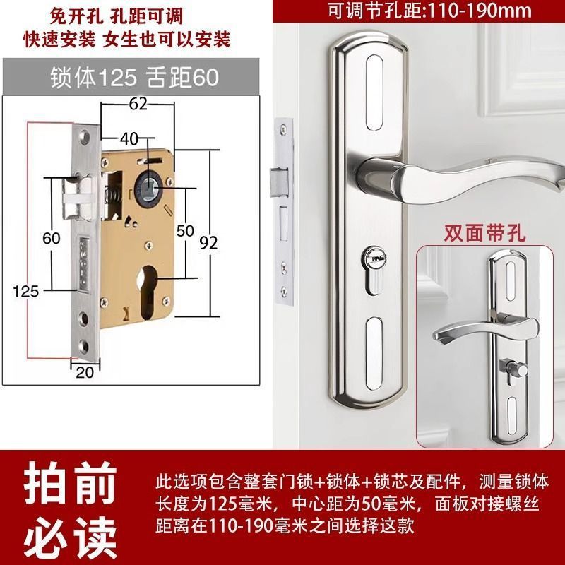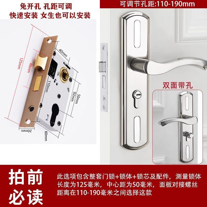 • 가정용으로 권장 - [E형 곡선형 손잡이 달빛 은색 - 조절 가능한 두꺼운 패널] - [전체 세트에는 열쇠가 포함되어 있습니다] 125-60 구리 삼구 잠금 장치 본체