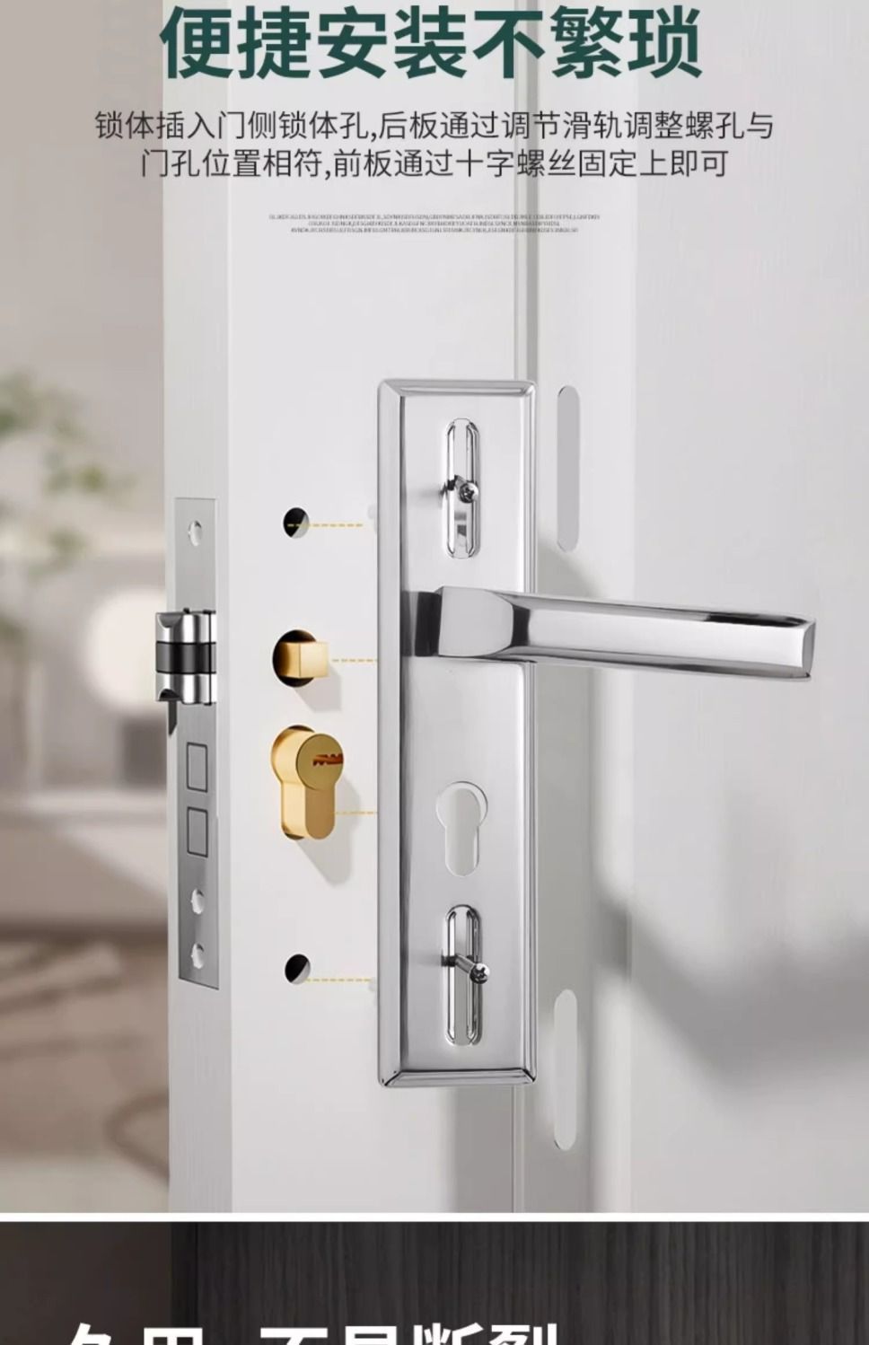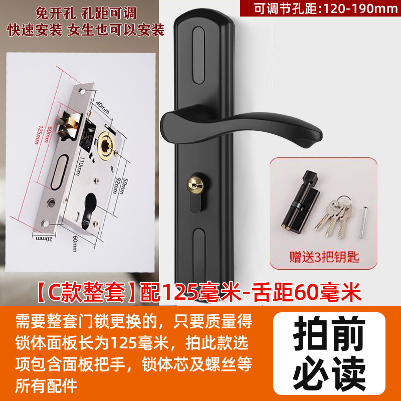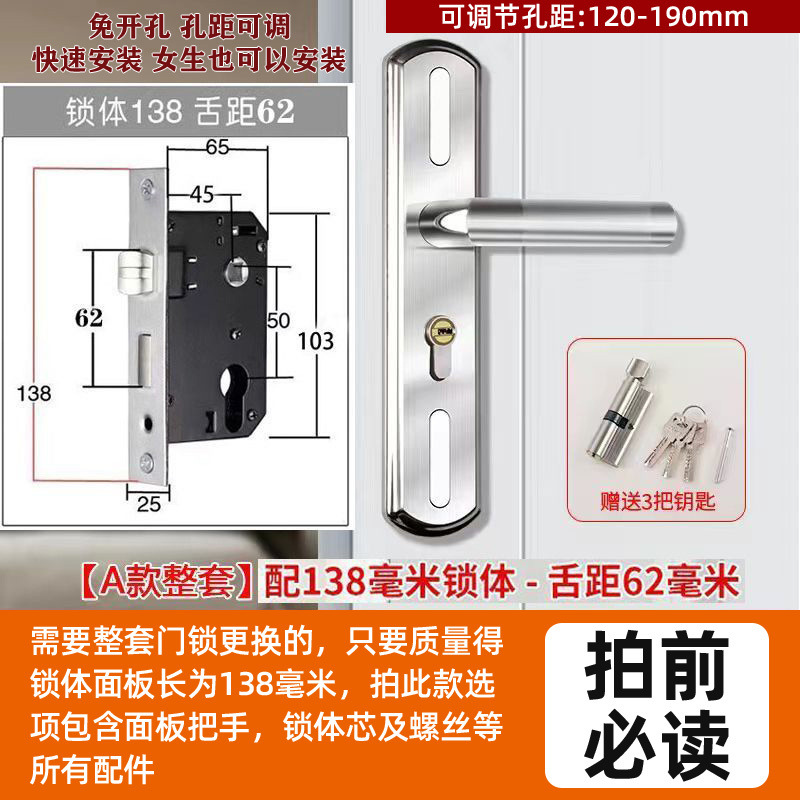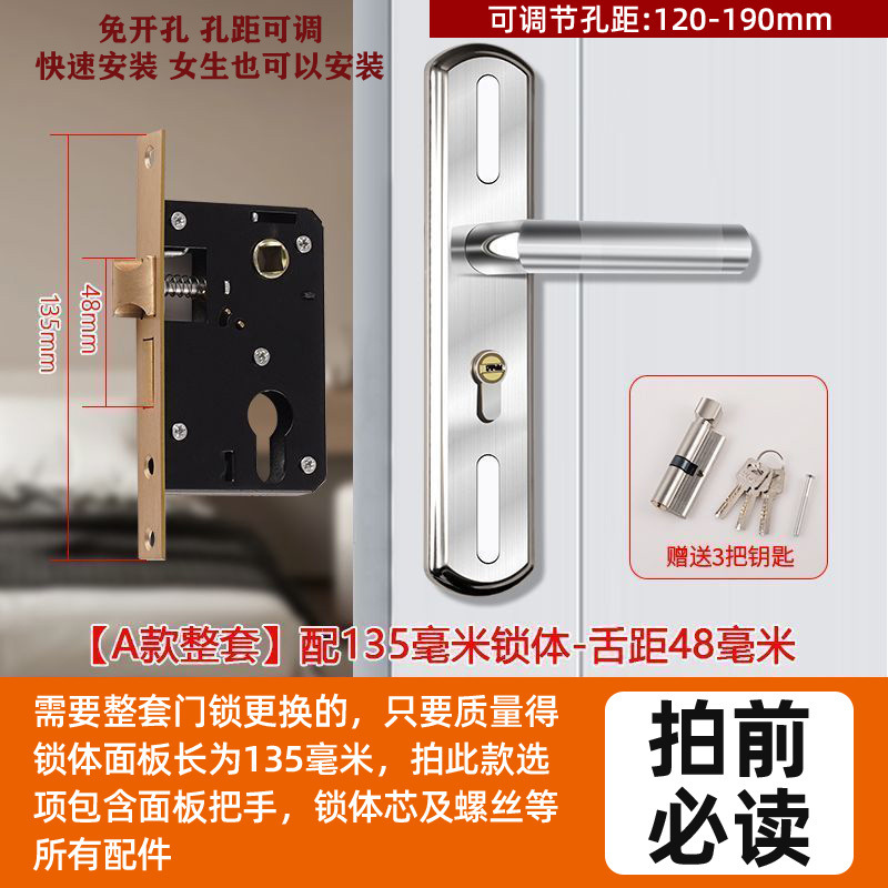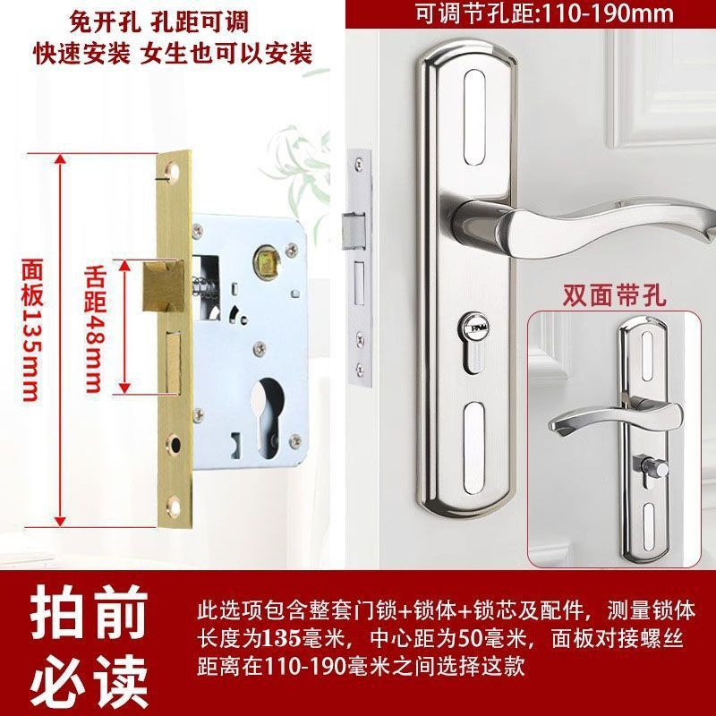 • 가정용으로 권장 - [E형 곡선형 손잡이 달빛 은색 - 조절 가능한 두꺼운 패널] - [전체 세트에는 열쇠가 포함되어 있습니다] 125-60 구리 삼구 잠금 장치 본체