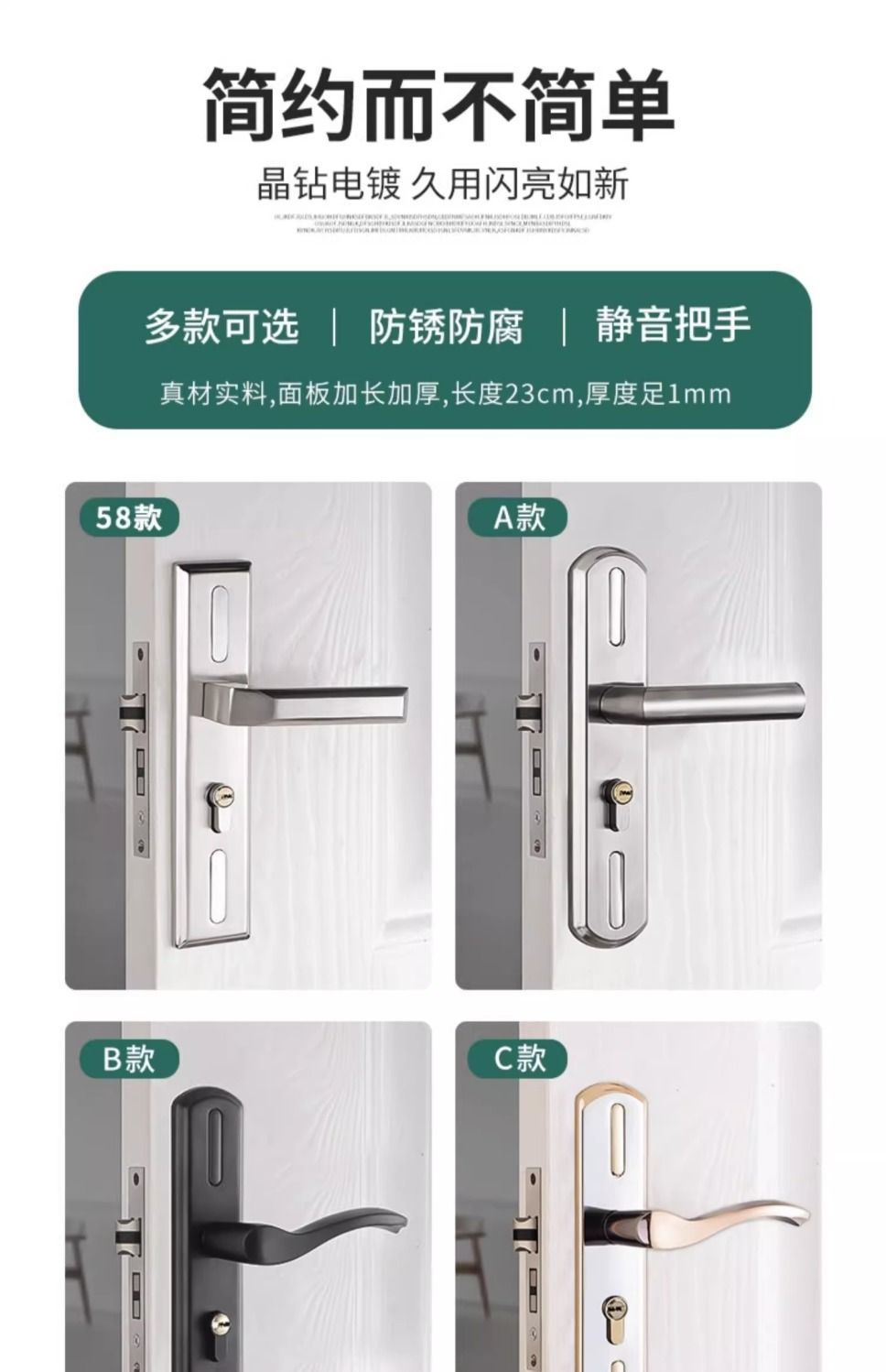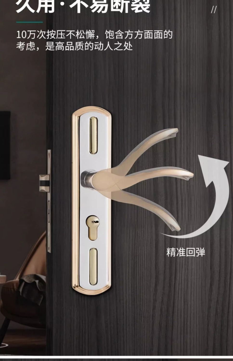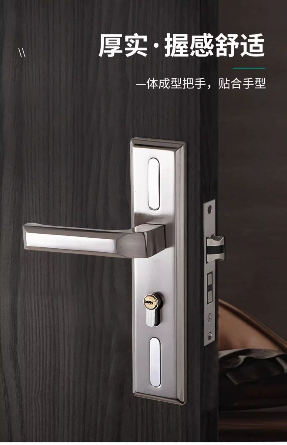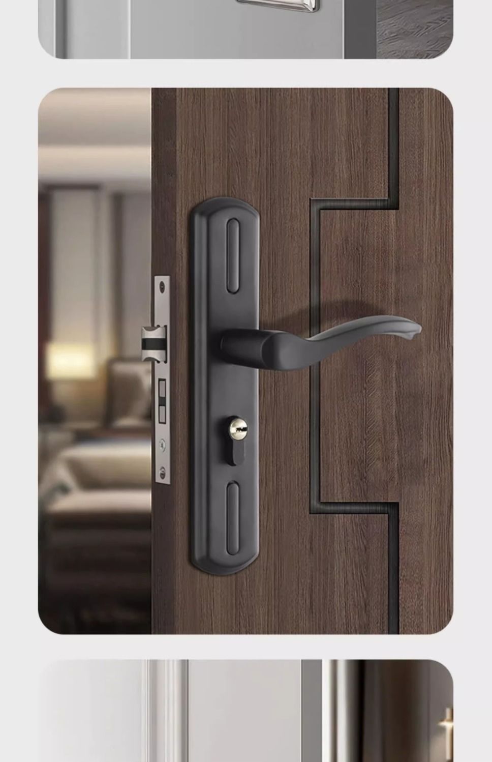 • 가정용으로 권장 - [E형 곡선형 손잡이 달빛 은색 - 조절 가능한 두꺼운 패널] - [전체 세트에는 열쇠가 포함되어 있습니다] 125-60 구리 삼구 잠금 장치 본체