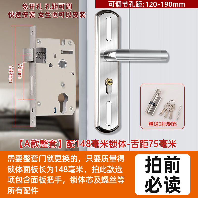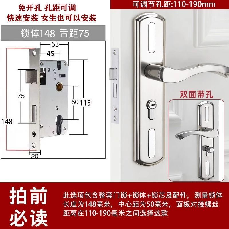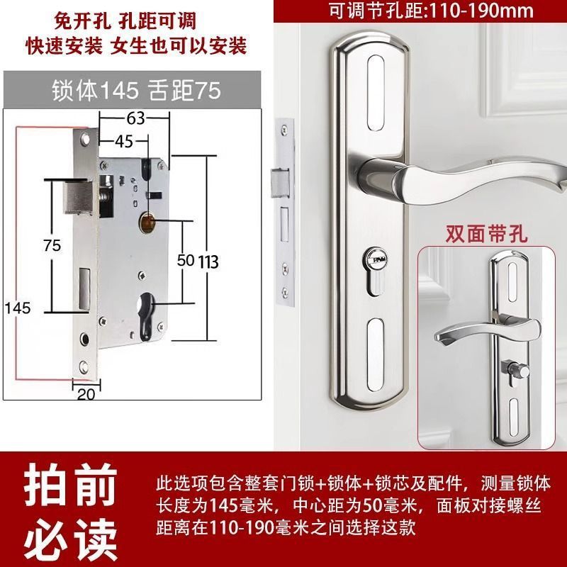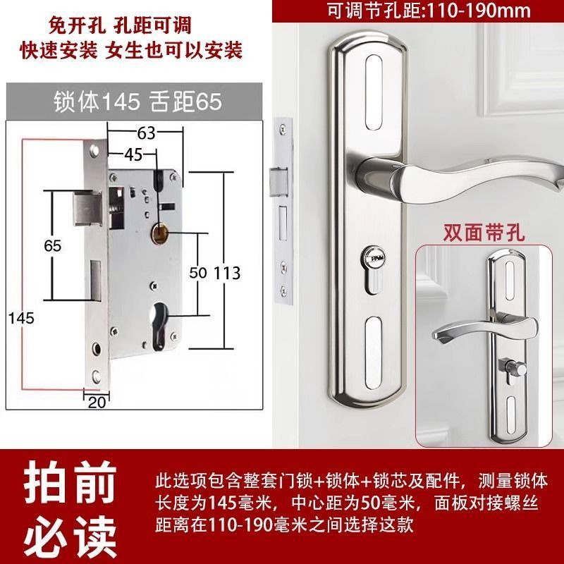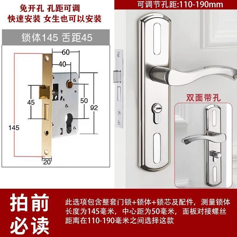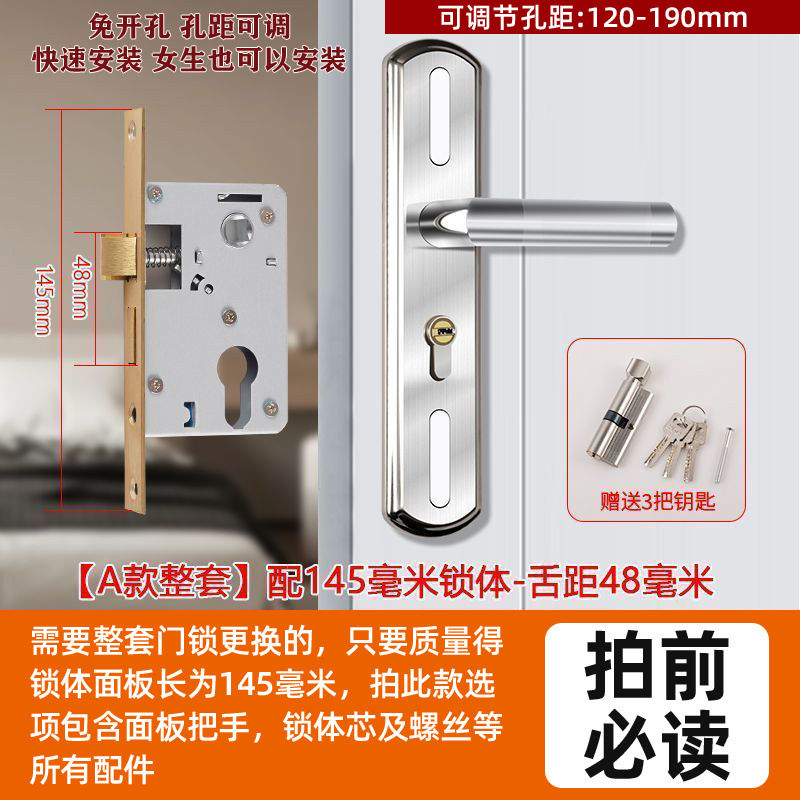 • 가정용으로 권장 - [E형 곡선형 손잡이 달빛 은색 - 조절 가능한 두꺼운 패널] - [전체 세트에는 열쇠가 포함되어 있습니다] 145-75 자물쇠 본체