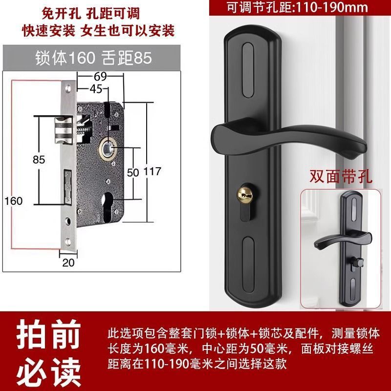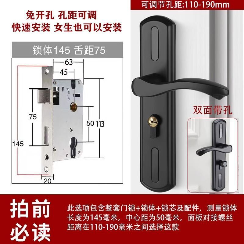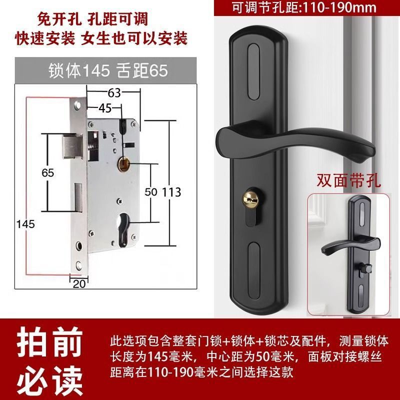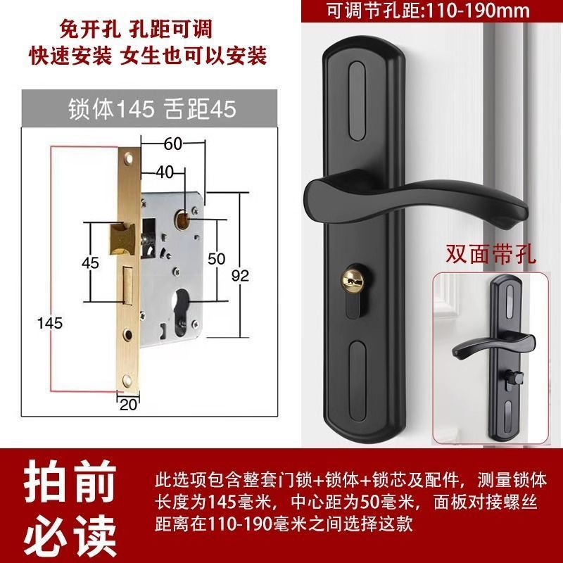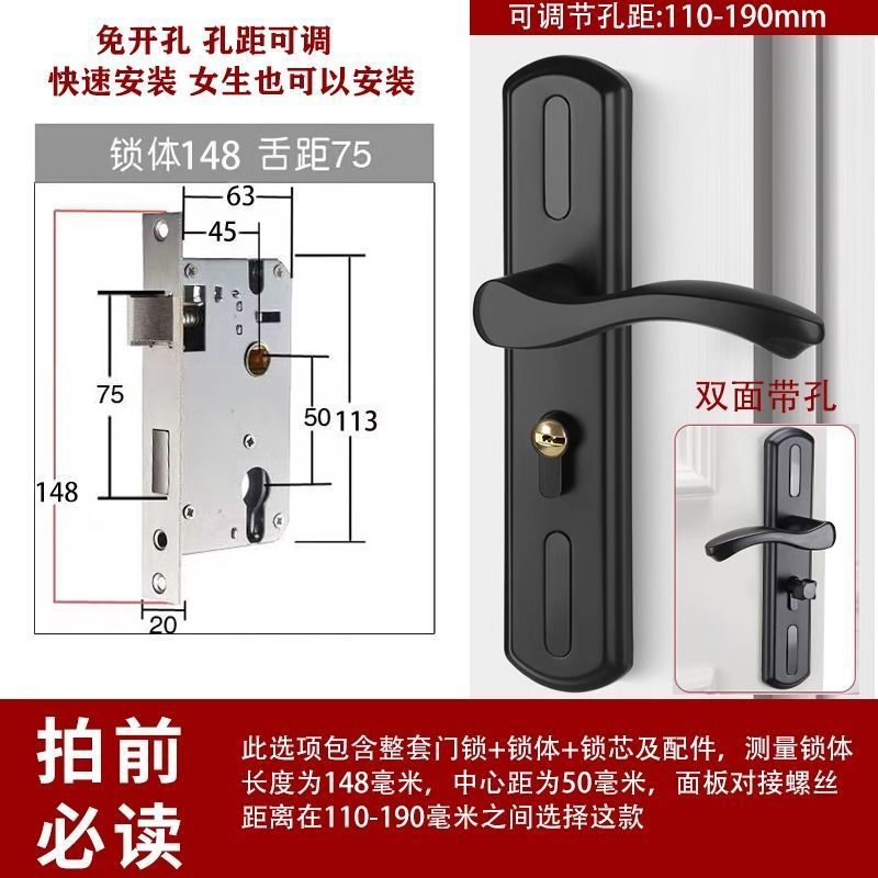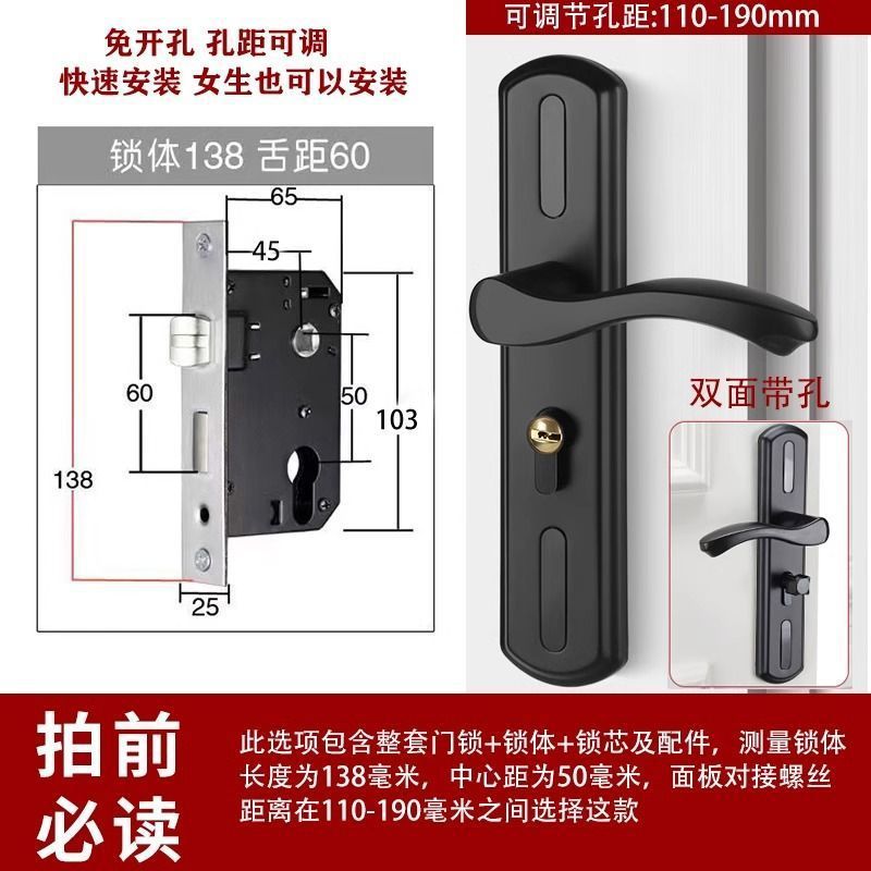 • 가정용으로 권장 - [B형 곡선 핸들바 무광 검정색 - 조절 가능한 두꺼운 패널] - [패널 + 핸들] 잠금 본체 및 실린더 없음