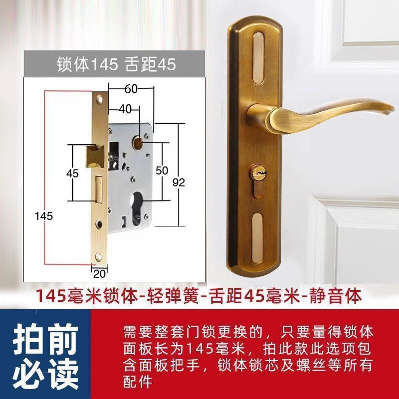 • 가정용으로 권장 - [D형 곡선 핸들 노란색 청동 - 조절 가능한 두꺼운 패널] - [전체 세트에는 키가 포함되어 있습니다] 145-45 자물쇠 본체