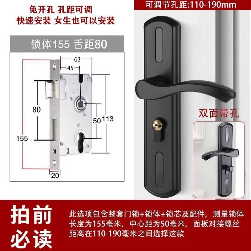 • 가정용으로 권장 - [B형 곡선 핸들 바 매트 블랙 - 조절 가능한 두꺼운 패널] - [전체 세트에는 키가 포함되어 있음] 125-48 구리 텅 잠금 본체