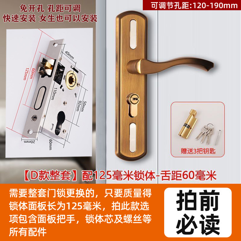 • 가정용으로 권장 - [D형 곡선 핸들 노란색 청동 - 조절 가능한 두꺼운 패널] - [전체 세트에는 키가 포함되어 있습니다] 125-48 구리 텅 잠금 본체