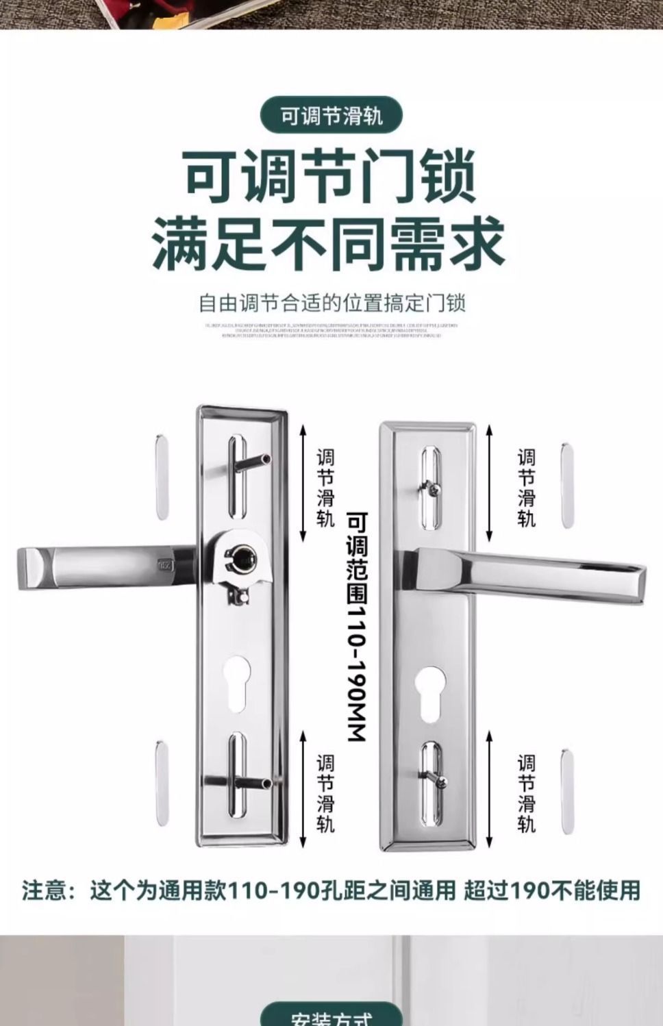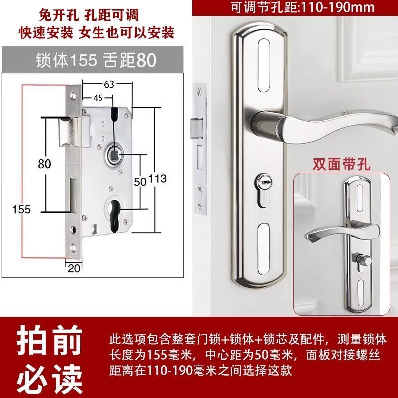• 가정용으로 권장 - [E형 곡선형 손잡이 달빛 은색 - 조절 가능한 두꺼운 패널] - [전체 세트에는 열쇠가 포함되어 있습니다] 155-80 자물쇠 본체