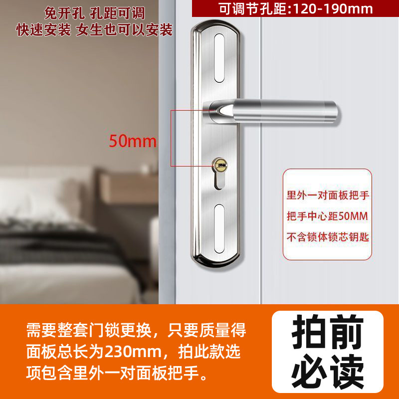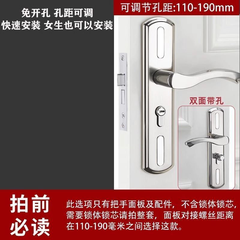 • 가정용으로 권장 - [E형 곡선 핸들 달빛 은색 - 조절 가능한 두꺼운 패널] - [패널 + 핸들] 잠금 본체 및 실린더 없음