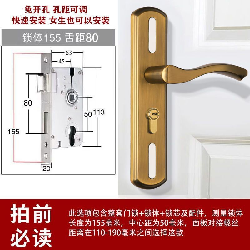 • 가정용으로 권장 - [D형 곡선 핸들 노란색 청동 - 조절 가능한 두꺼운 패널] - [전체 세트에는 키가 포함되어 있습니다] 155-80 자물쇠 본체