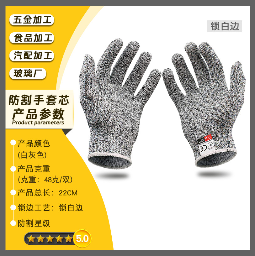 • [1 쌍] 회색 가장자리가 있는 XL 사이즈 절단 방지 장갑
