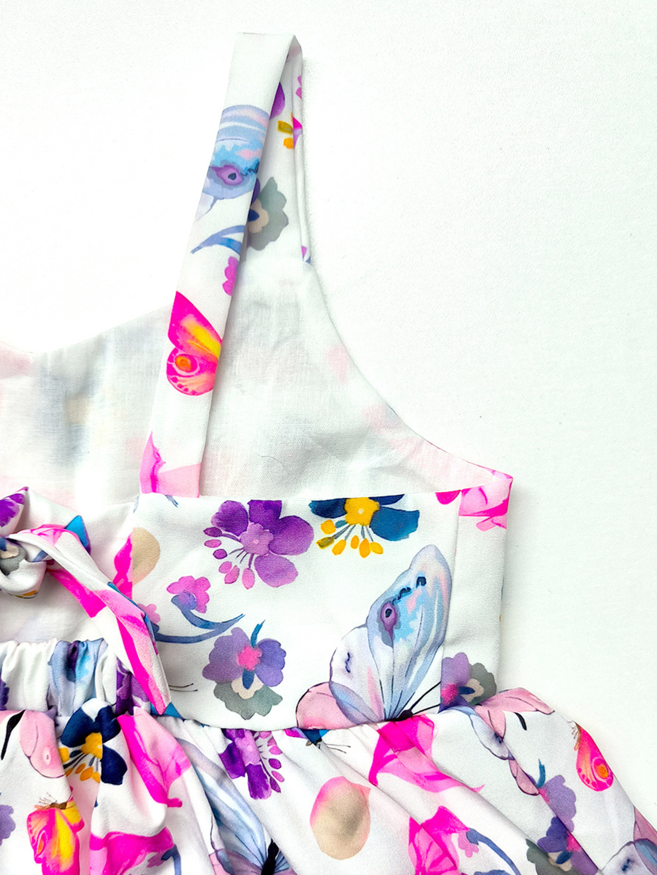2025 여름 소녀 해변 원피스 스트랩 백리스 나비 꽃 전체 인쇄 아기 소녀 해변 휴일 원피스