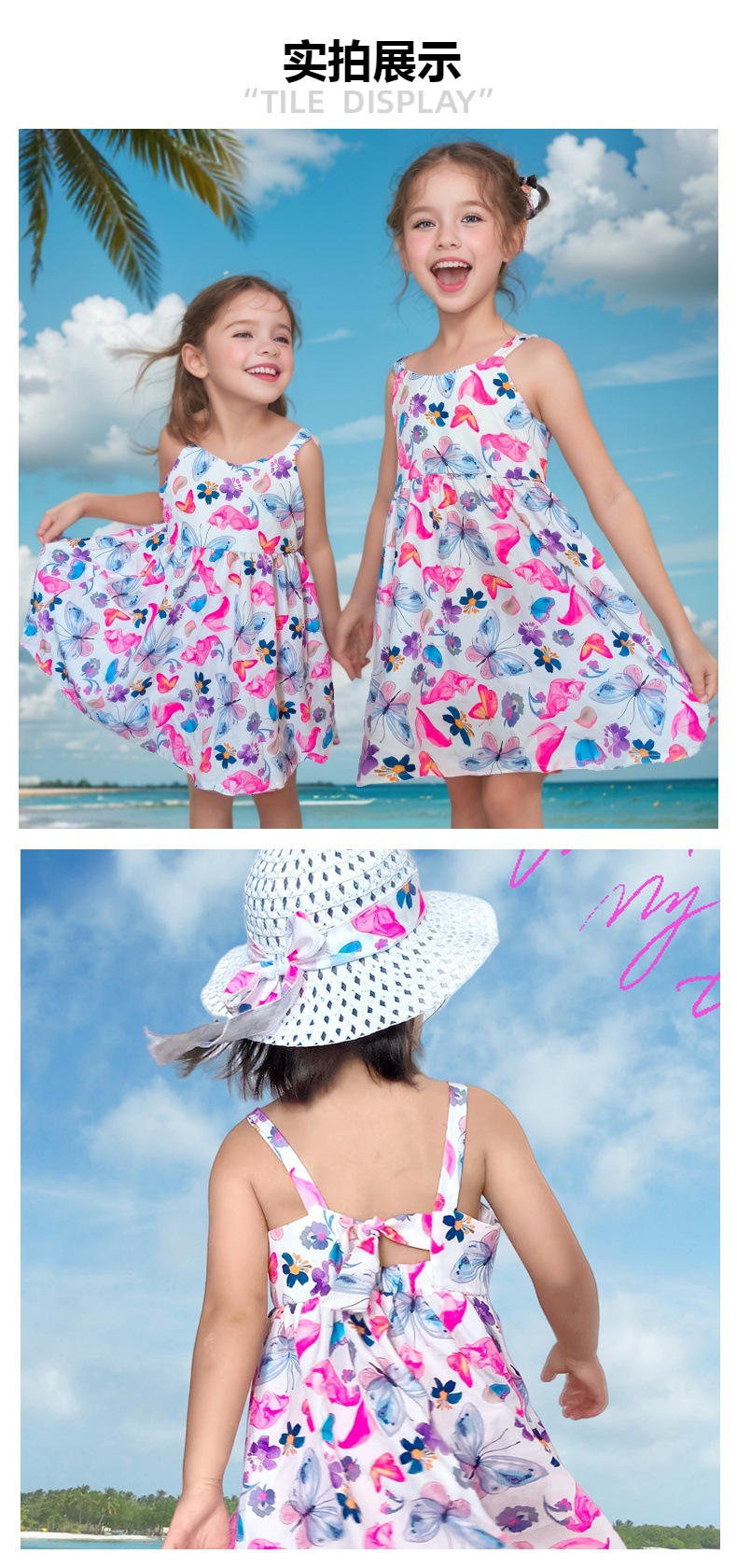 2025 여름 소녀 해변 원피스 스트랩 백리스 나비 꽃 전체 인쇄 아기 소녀 해변 휴일 원피스스토어 가기