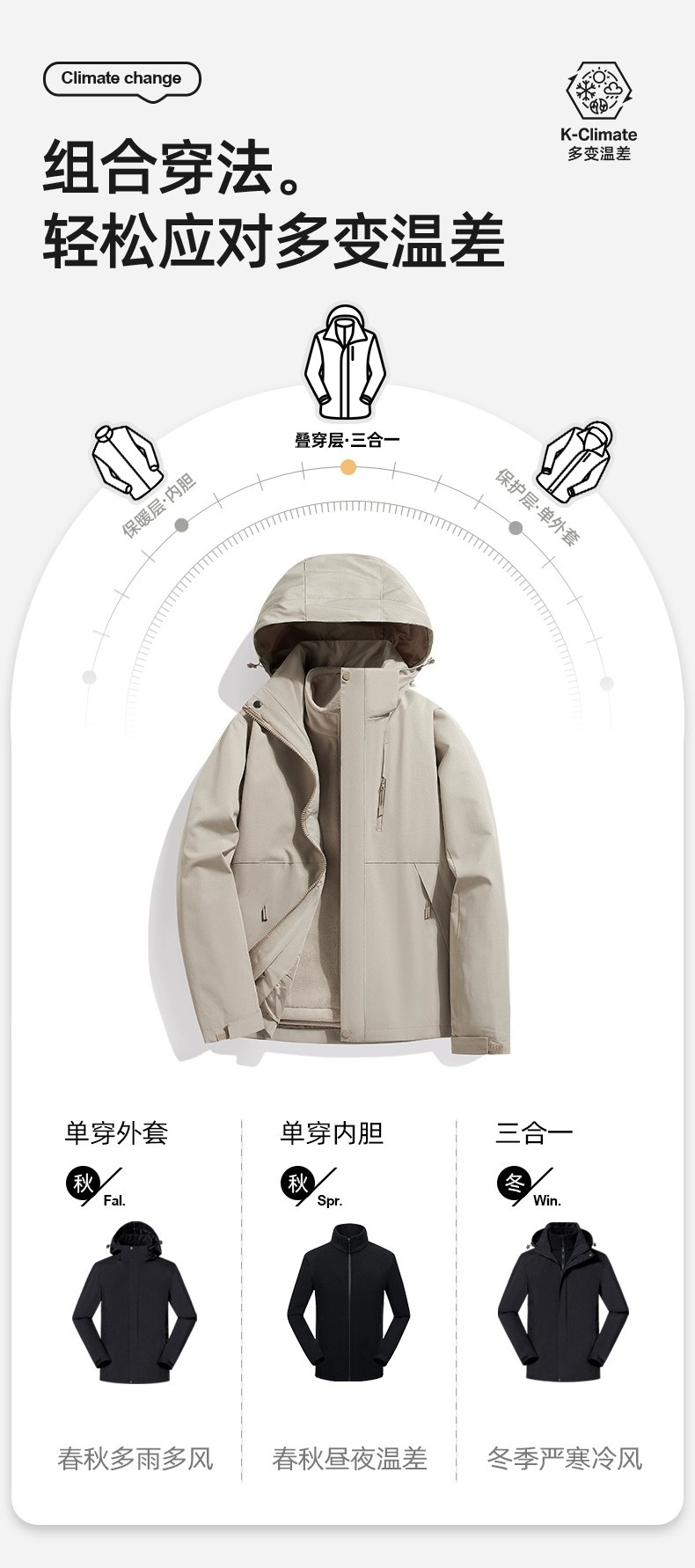 딱따구리 충전 의류 여성 2025 년 새 봄과 가을 3 대 1 분리 가능한 라이너 재킷 남성용 야외 등산 의류스토어 가기