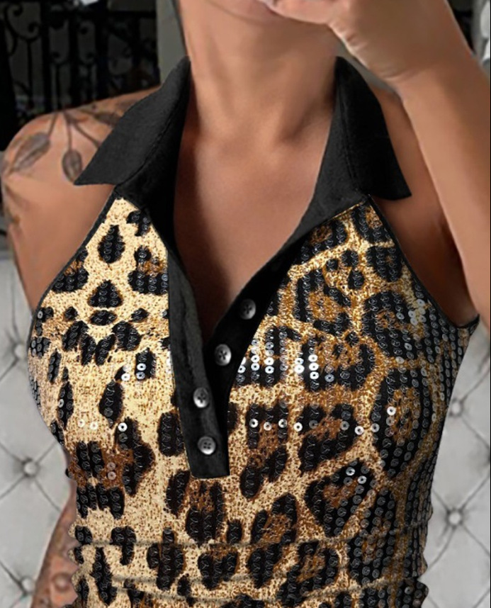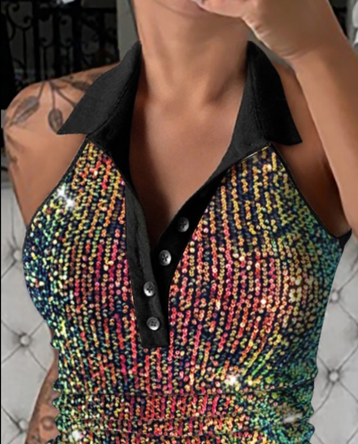 2025 국경 간 아마존 알리 익스프레스 유럽과 미국 여름 새로운 스팽글 옷깃 민소매 패션 탑스토어 가기