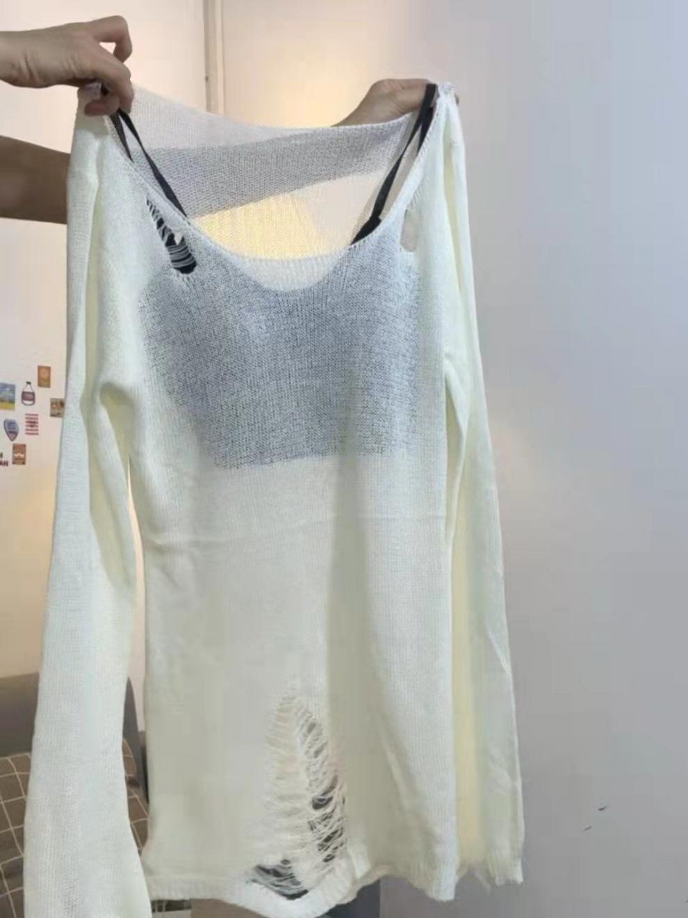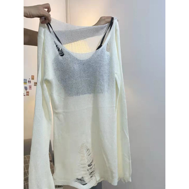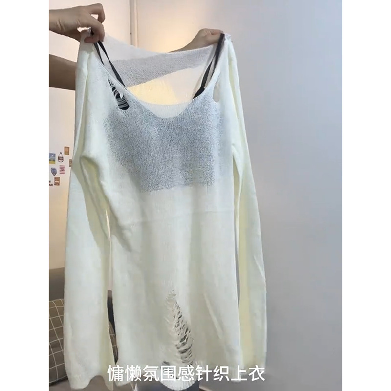 할로우 아웃 홀 스웨터 니트 셔츠 투피스 세트 여성의 여름 새로운 핫 걸 선 스크린 블라우스 얇은 긴팔 탑 트렌디스토어 가기