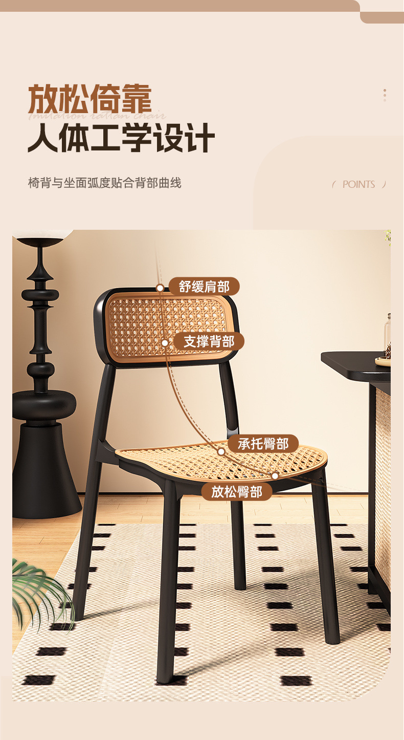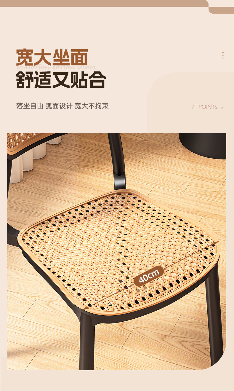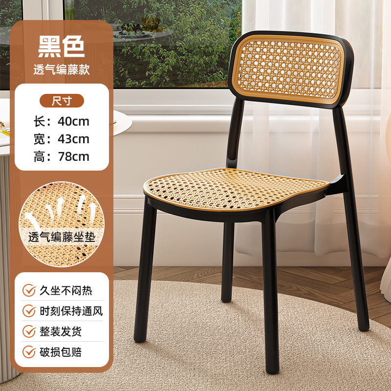 藤编塑料椅子家用可叠放餐椅休闲靠背椅靠背小户型椅户外舒适餐厅