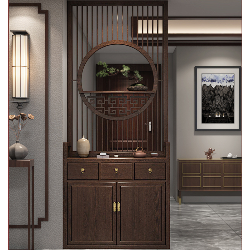 새로운 중국식 스크린 캐비닛 거실 파티션 입구 복도 대피소 오른쪽 끝 문이있는 간단한 현대 단단한 나무 신발 캐비닛