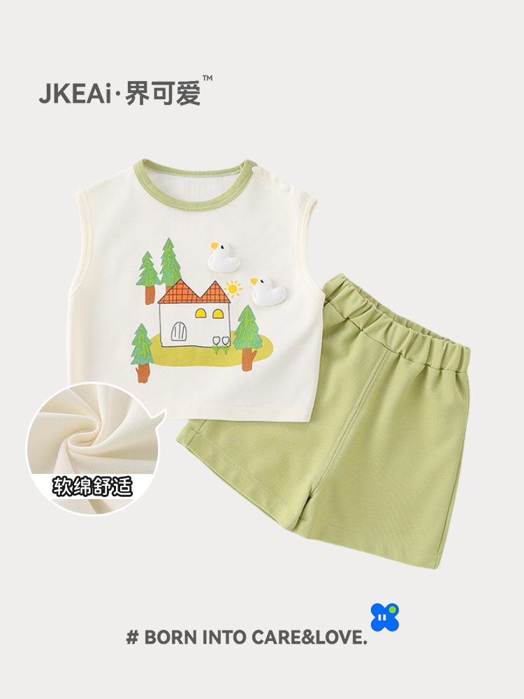 아기 여름 세트 여름 얇은 소년 조끼 반바지 두 조각 소녀 아기 스포츠 세트 도매스토어 가기