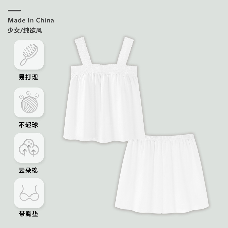 여름 얇은 구름 코튼 홈 옷 플러스 사이즈 반바지 세트 가슴 패드 슬링 여성 잠옷스토어 가기